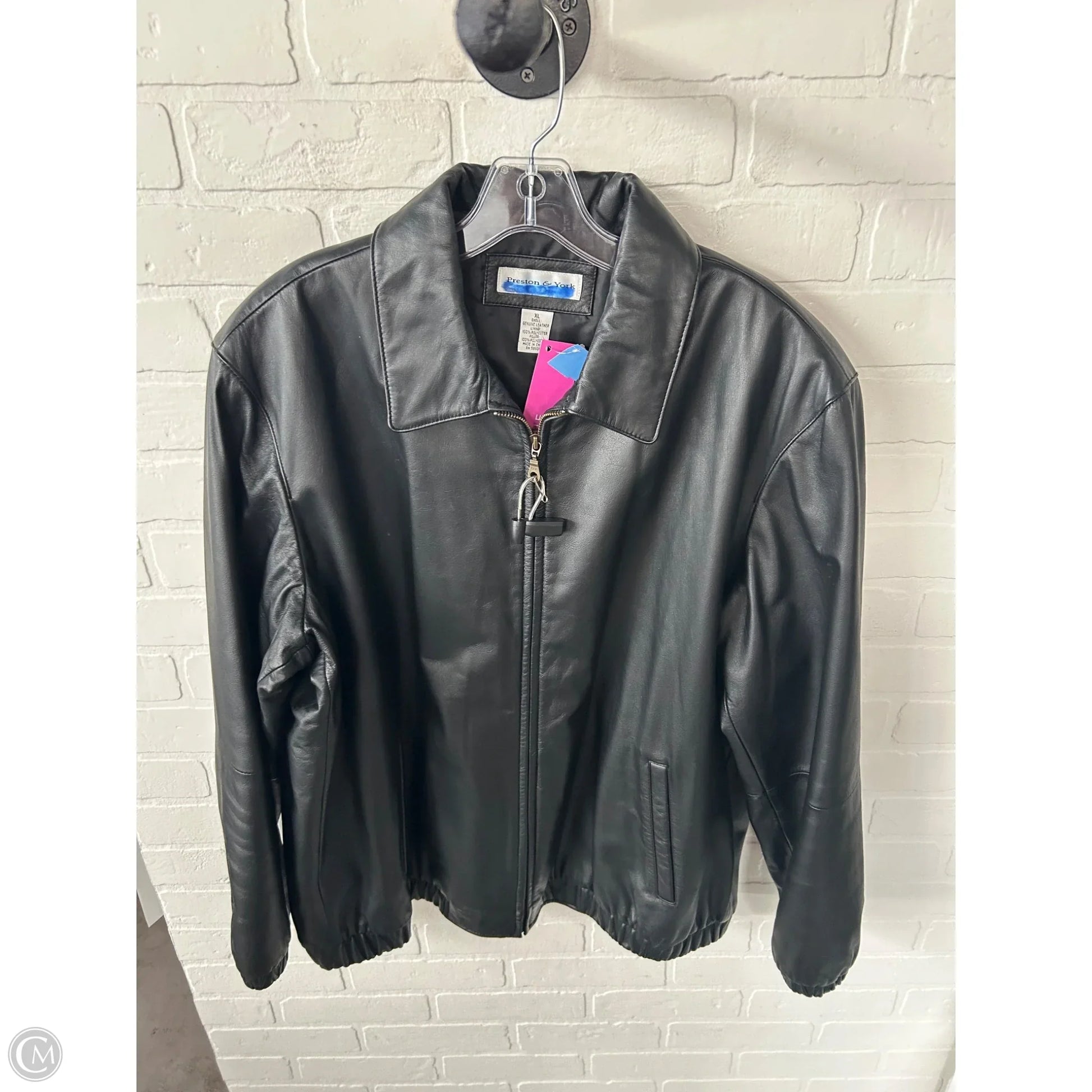 Indulge in timeless sophistication with this XL black leather jacket by Preston and New York. Crafted for durability and style. Perfect for any occasion.