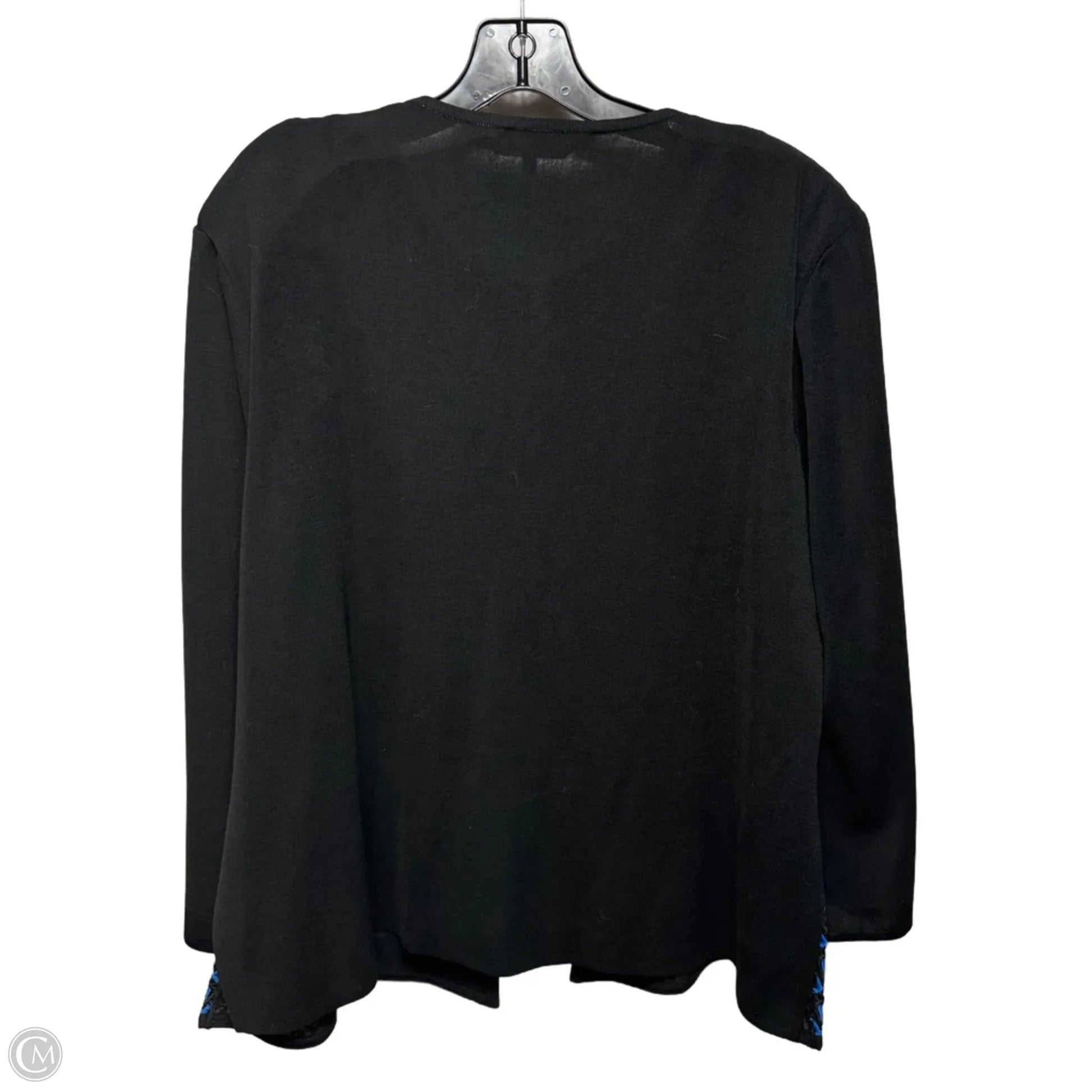 Lace Front Embroidered Crew Neck Knit Jacket By Ming Wang In Black & Blue, Size: XL