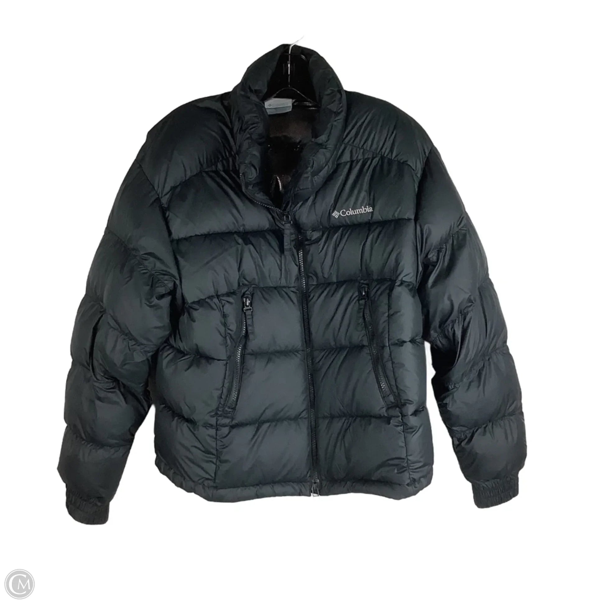 Stay warm in style with Columbia's sleek black puffer jacket. Size S, perfect for urban adventures.