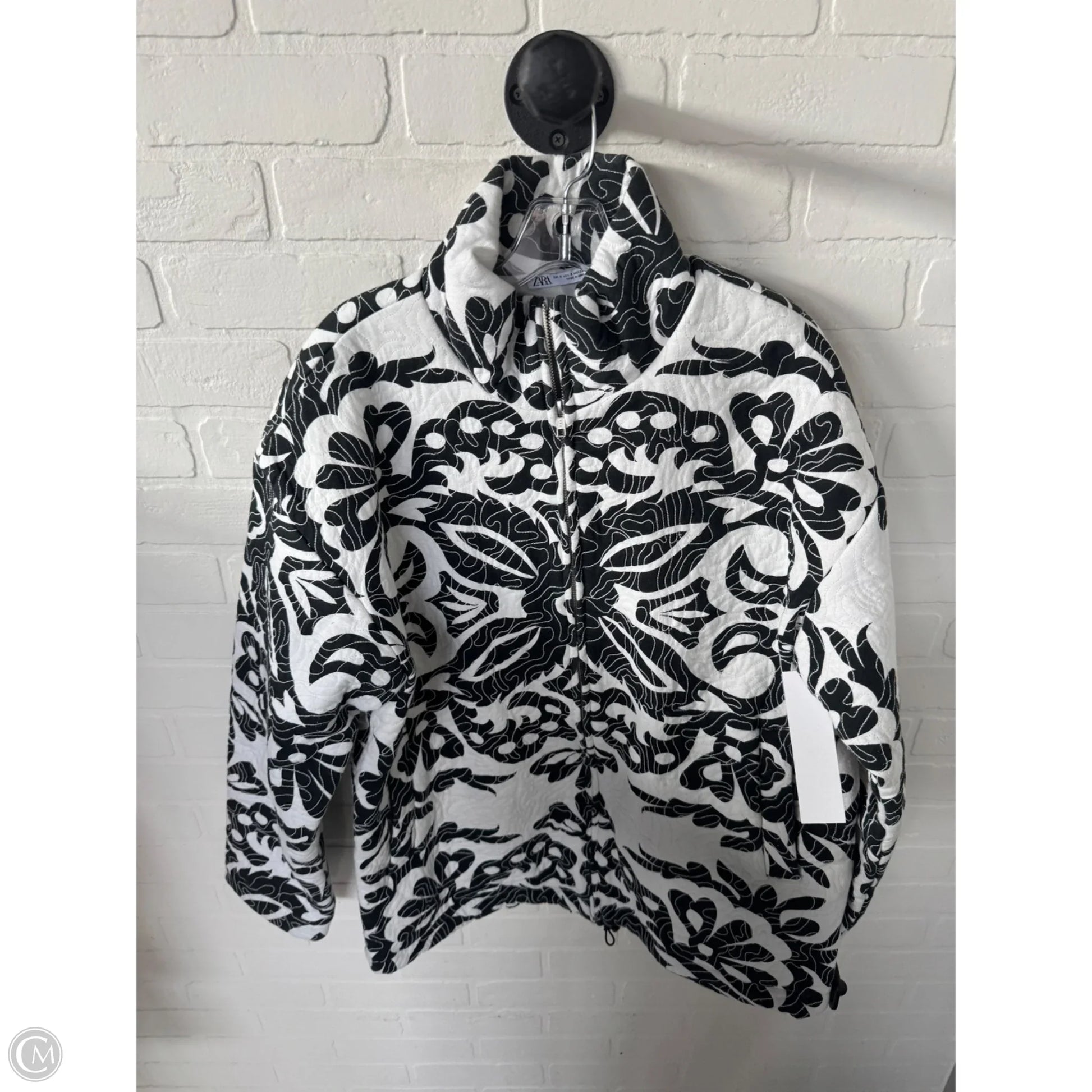 Jacket Puffer & Quilted By Zara In Black & White, Size: S