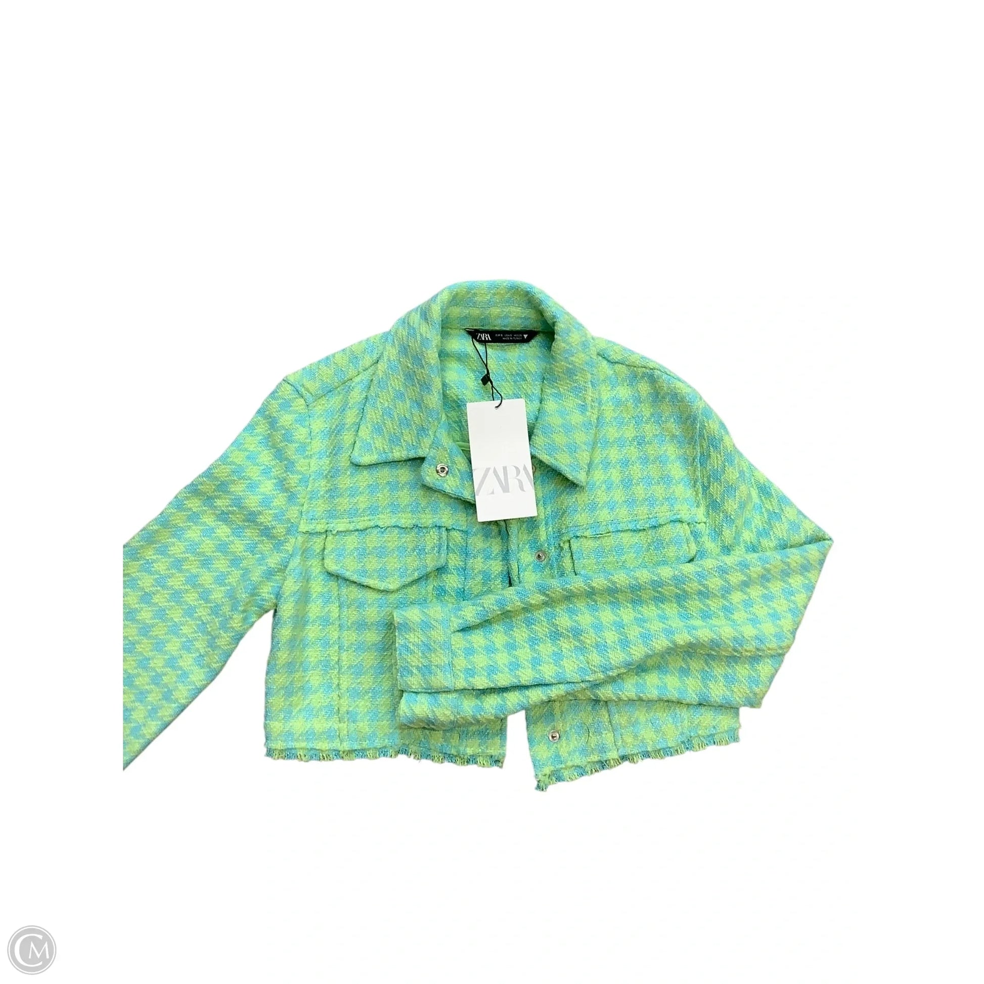 Jacket Shirt By Zara In Blue & Green, Size: S