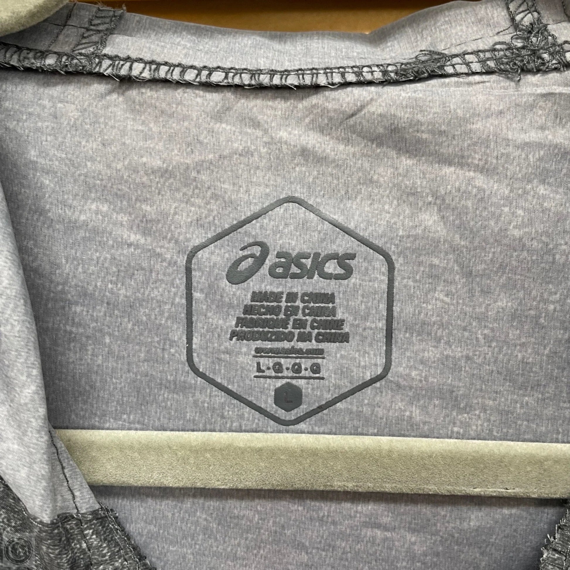 Jacket Windbreaker By Asics In Grey, Size: L
