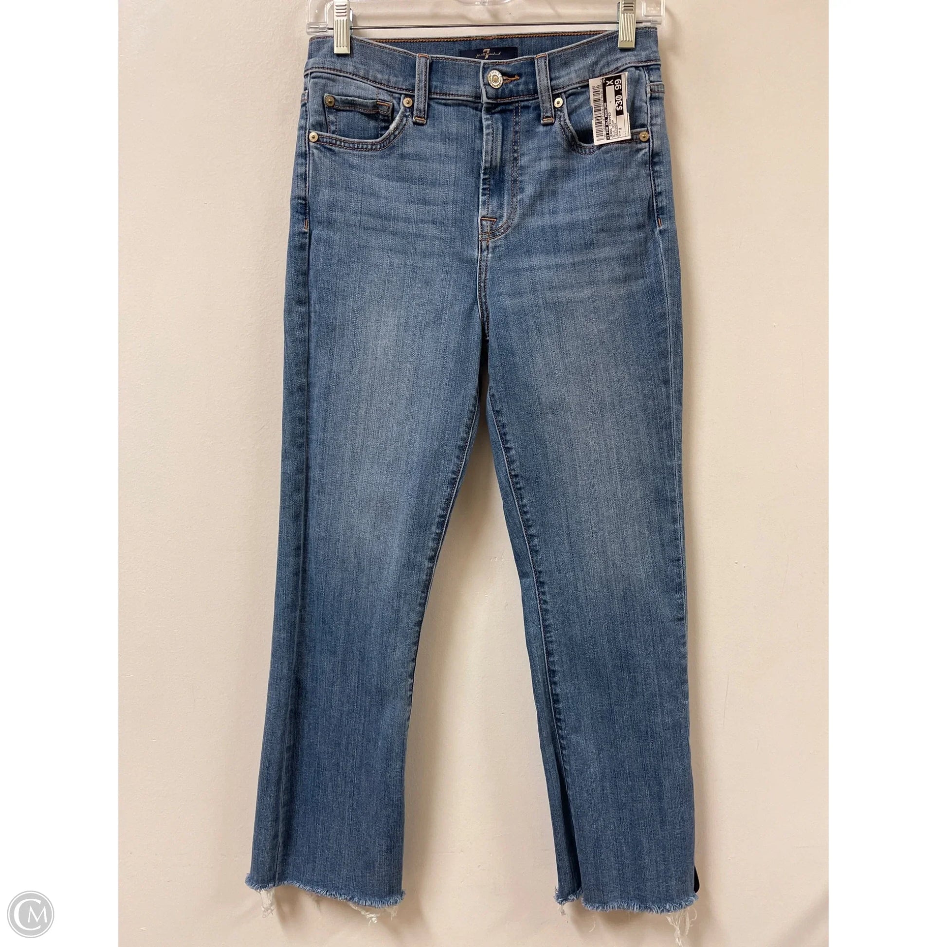 7 For All Mankind's Blue Denim Cropped Jeans in size 2 offer a modern twist on classic style. Perfect fit guaranteed.