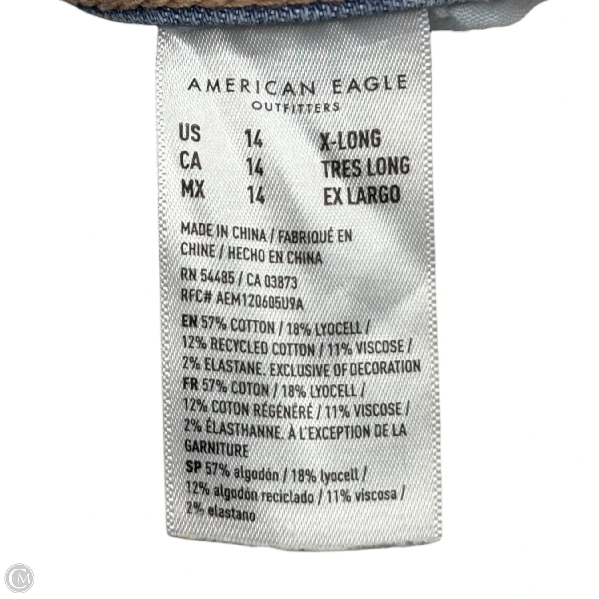 Jeans Wide Leg By American Eagle In Blue Denim, Size: 14