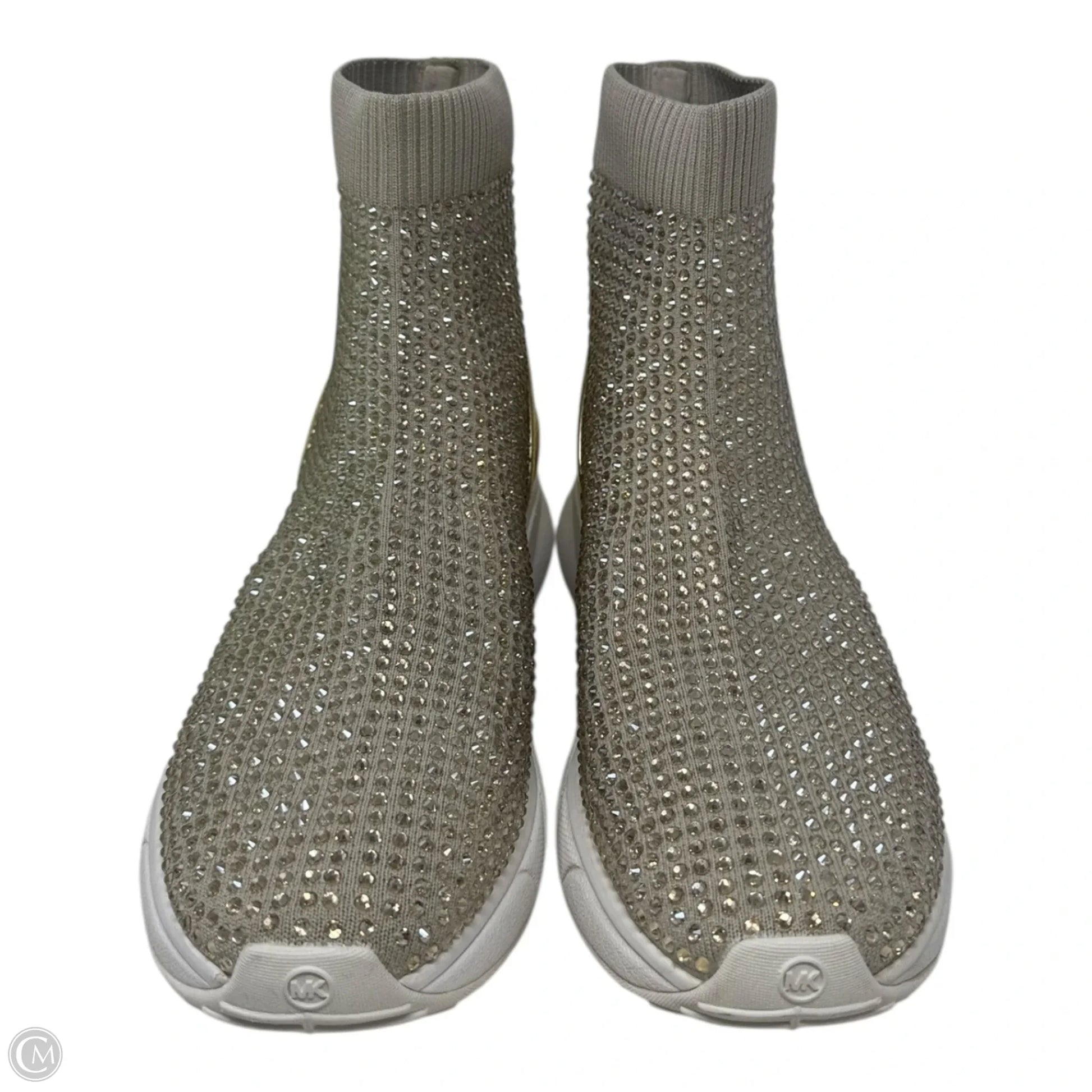 Katrina Rhinestone Sock Boots Ankle Flats By Michael By Michael Kors In Gold & White, Size: 9.5