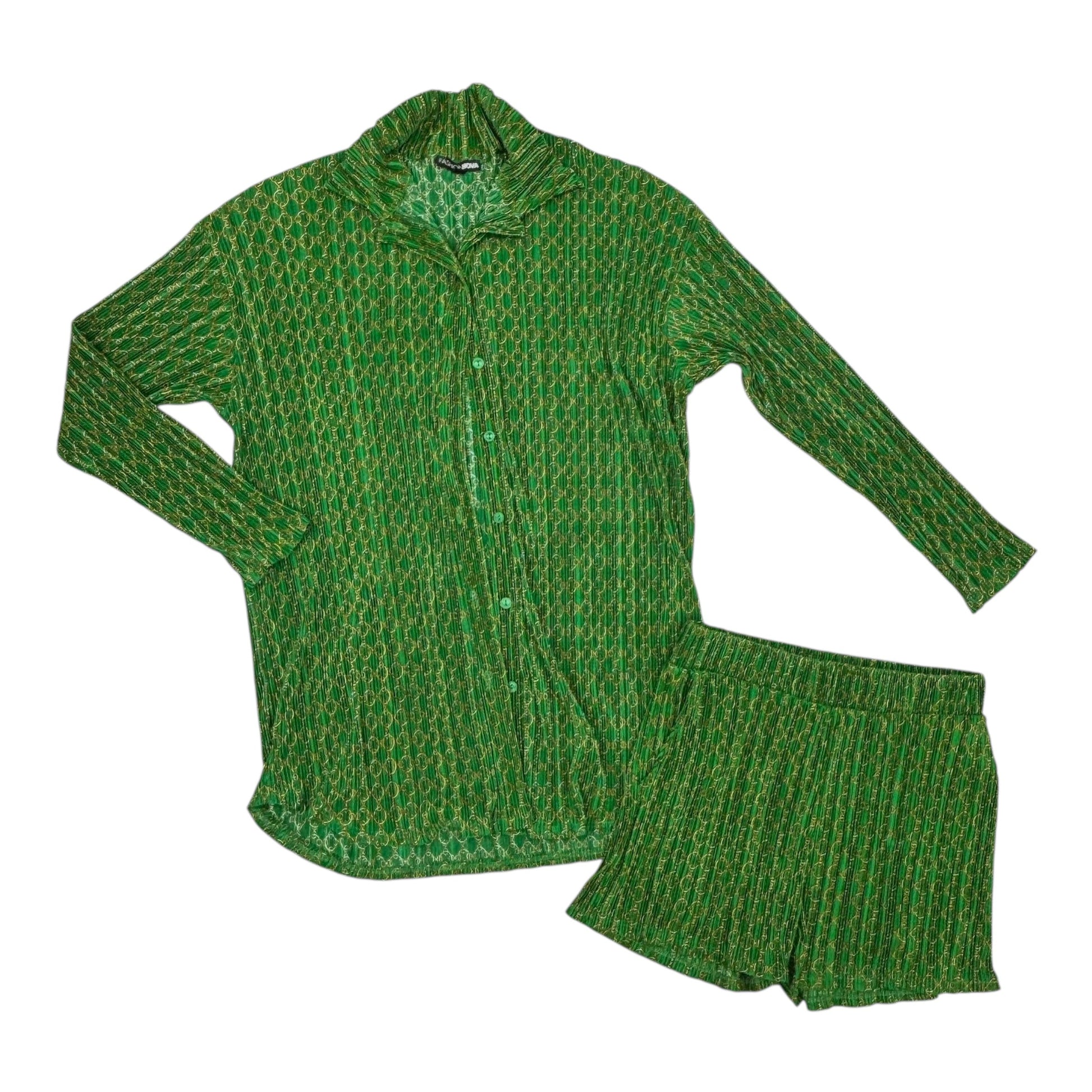 Lounge Set Shorts By Fashion Nova In Green & Yellow, Size:M