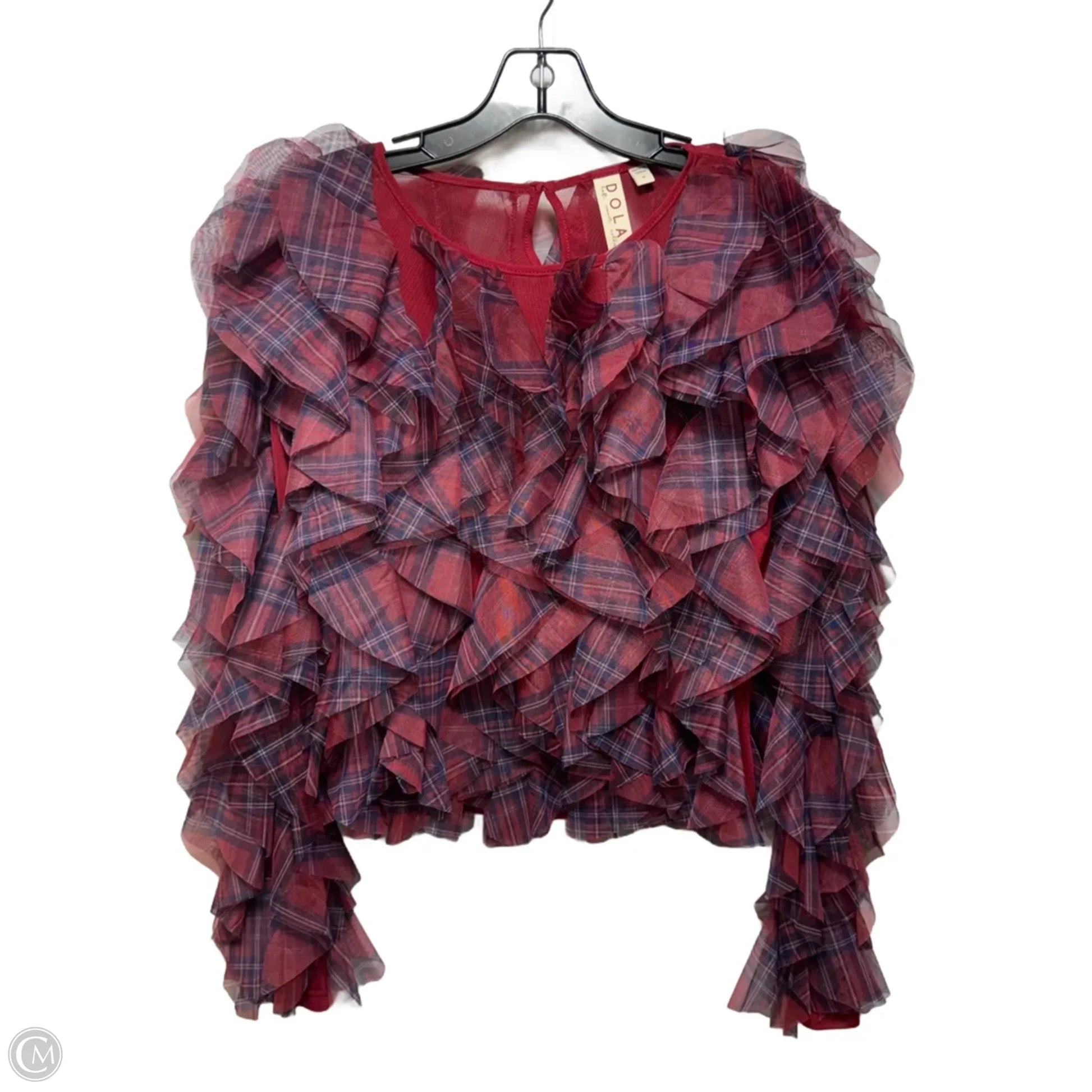 Ruffle Plaid Crew-Neck Blouse By Dolan Left Coast X Anthropologie By Dolan Left Coast In Plaid Pattern, Size: M