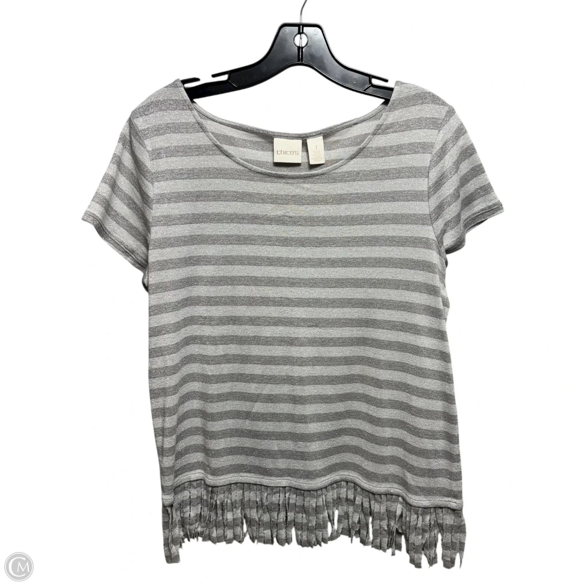 Metallic Top Short Sleeve By Chicos In Striped Pattern, Size: M
