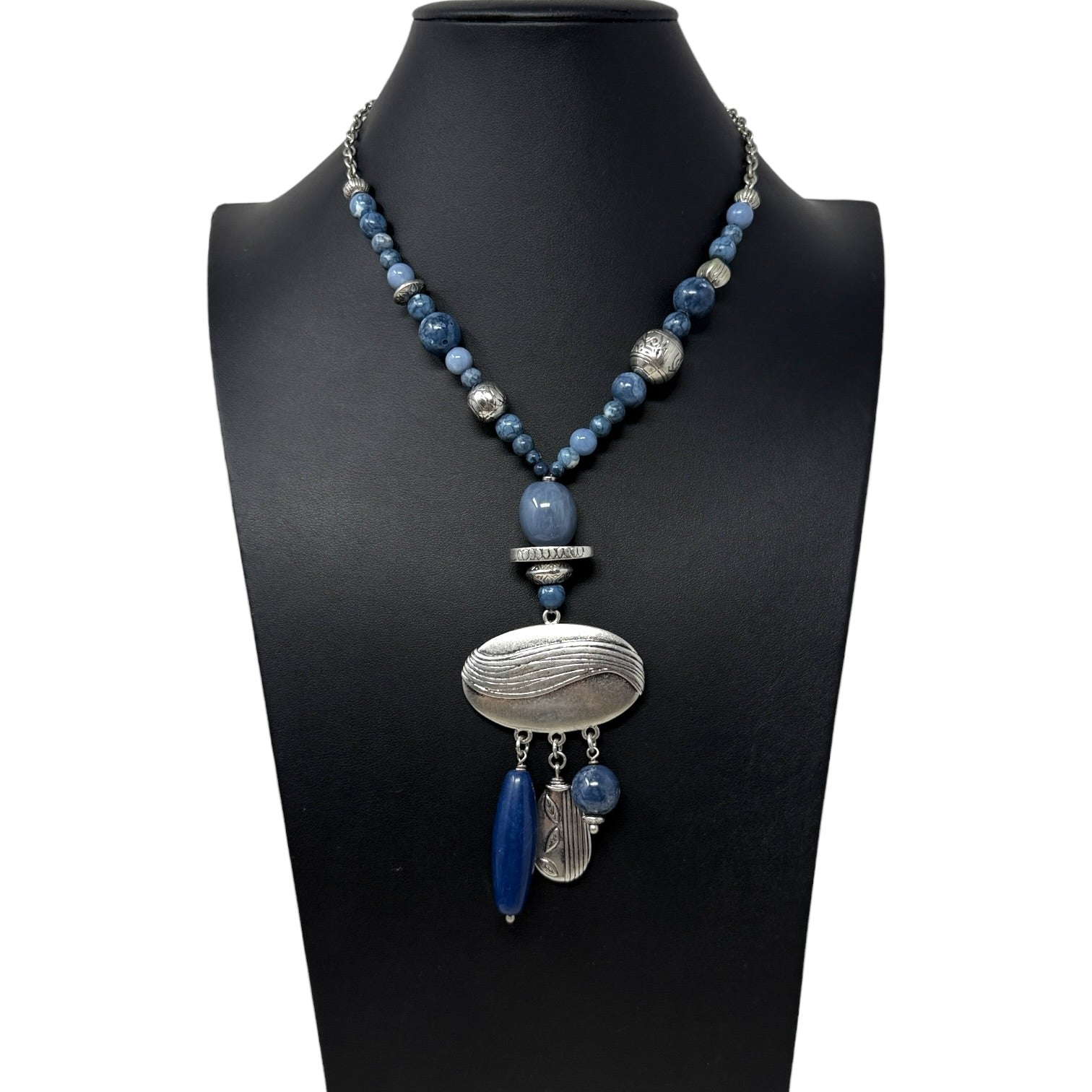 Blue & Silver Beaded Statement Necklace By Chico’s
