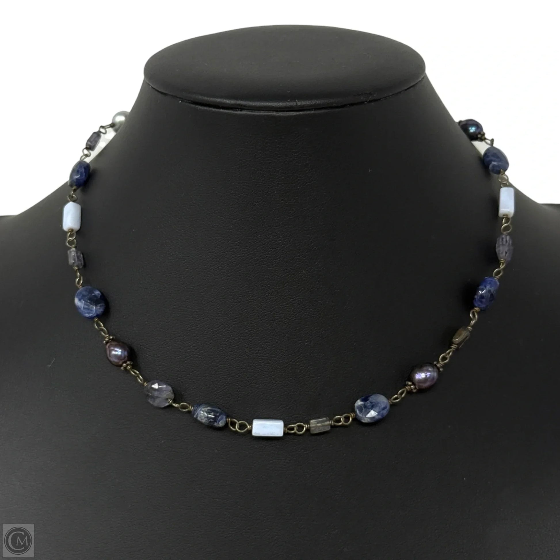 Retired Sodalite & Sterling Silver & Pearl Bead Necklace By Silpada