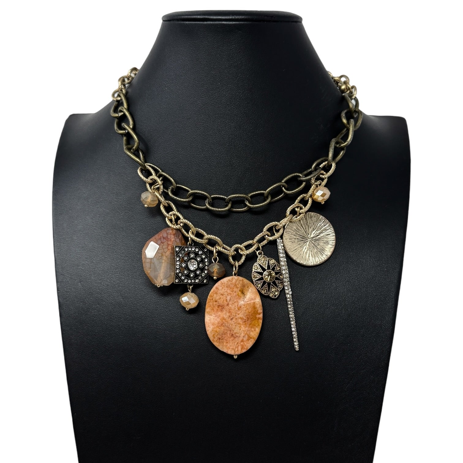 Mixed Metal Multi Stone Double Layer Statement Necklace By Chico’s