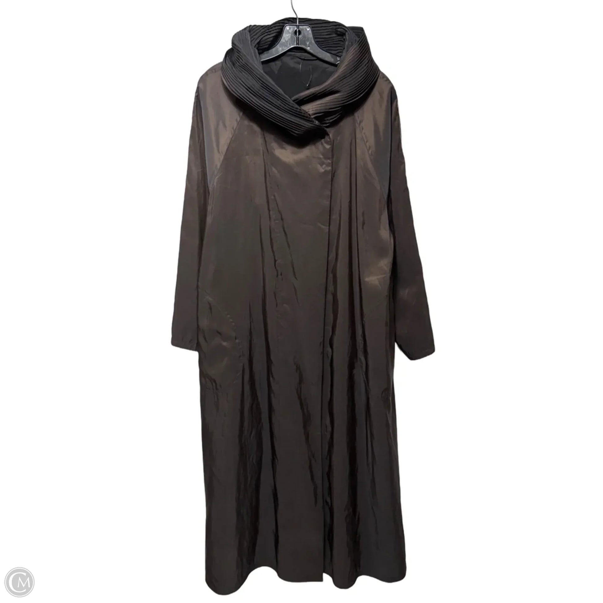 Pleated Collar Long Coat By Mycrapac In Black & Brown, Size: S