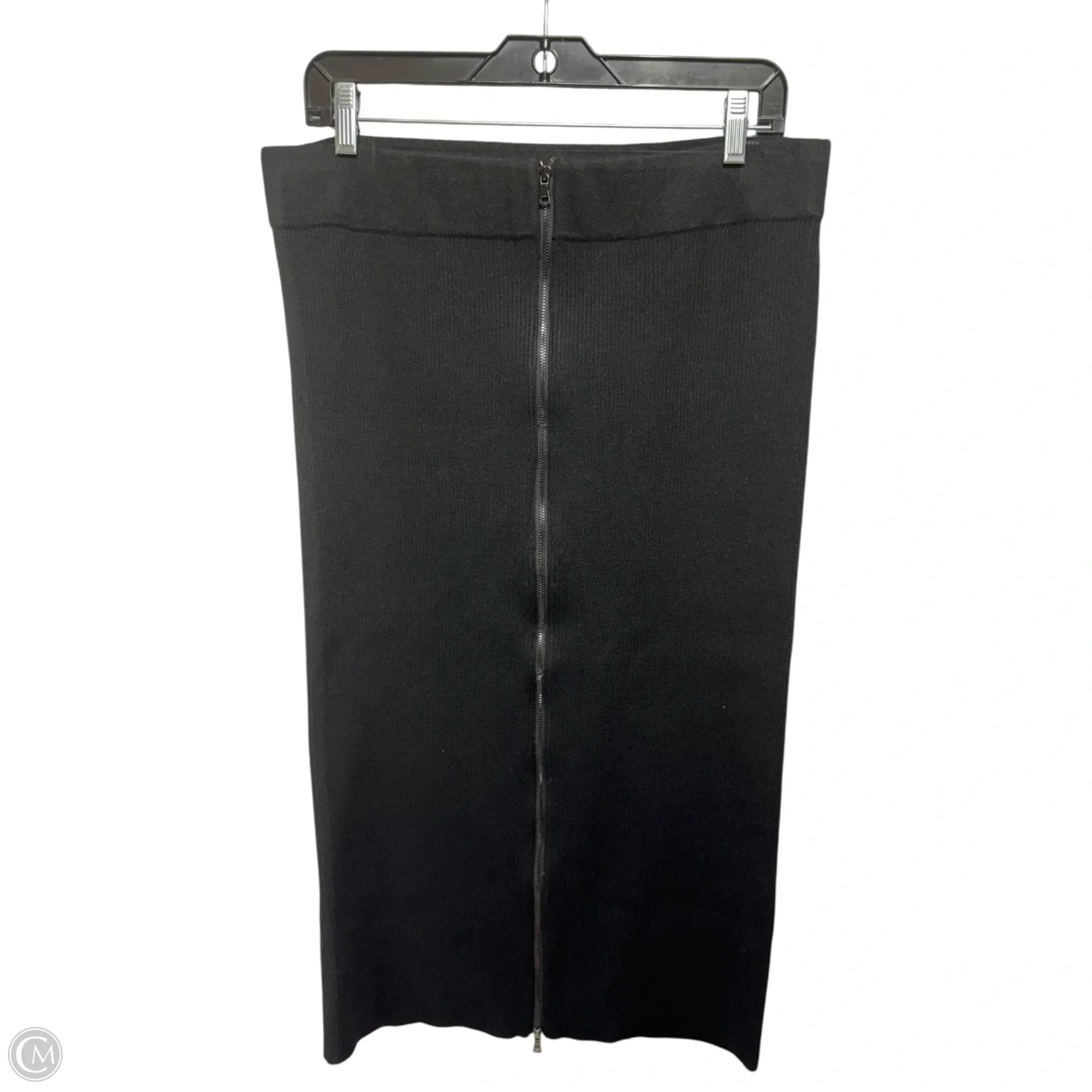 Ribbed Knit Zip Skirt Midi By Ann Taylor In Black, Size: L