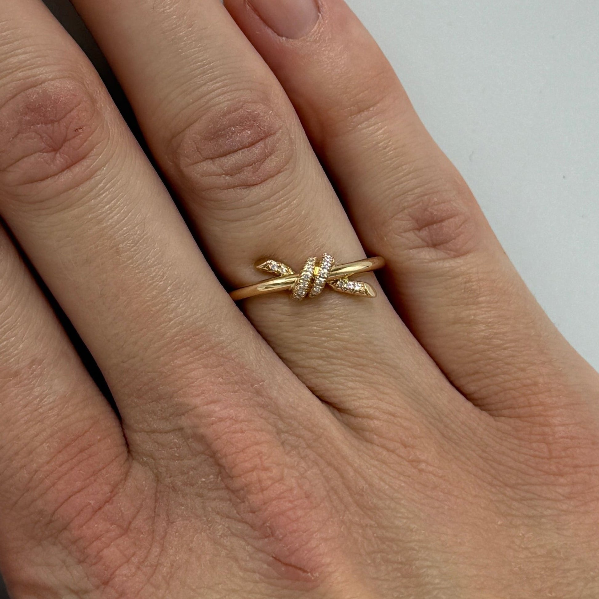 T & CO. 18K Rose Gold Pave Diamond Knot Luxury Designer Ring.