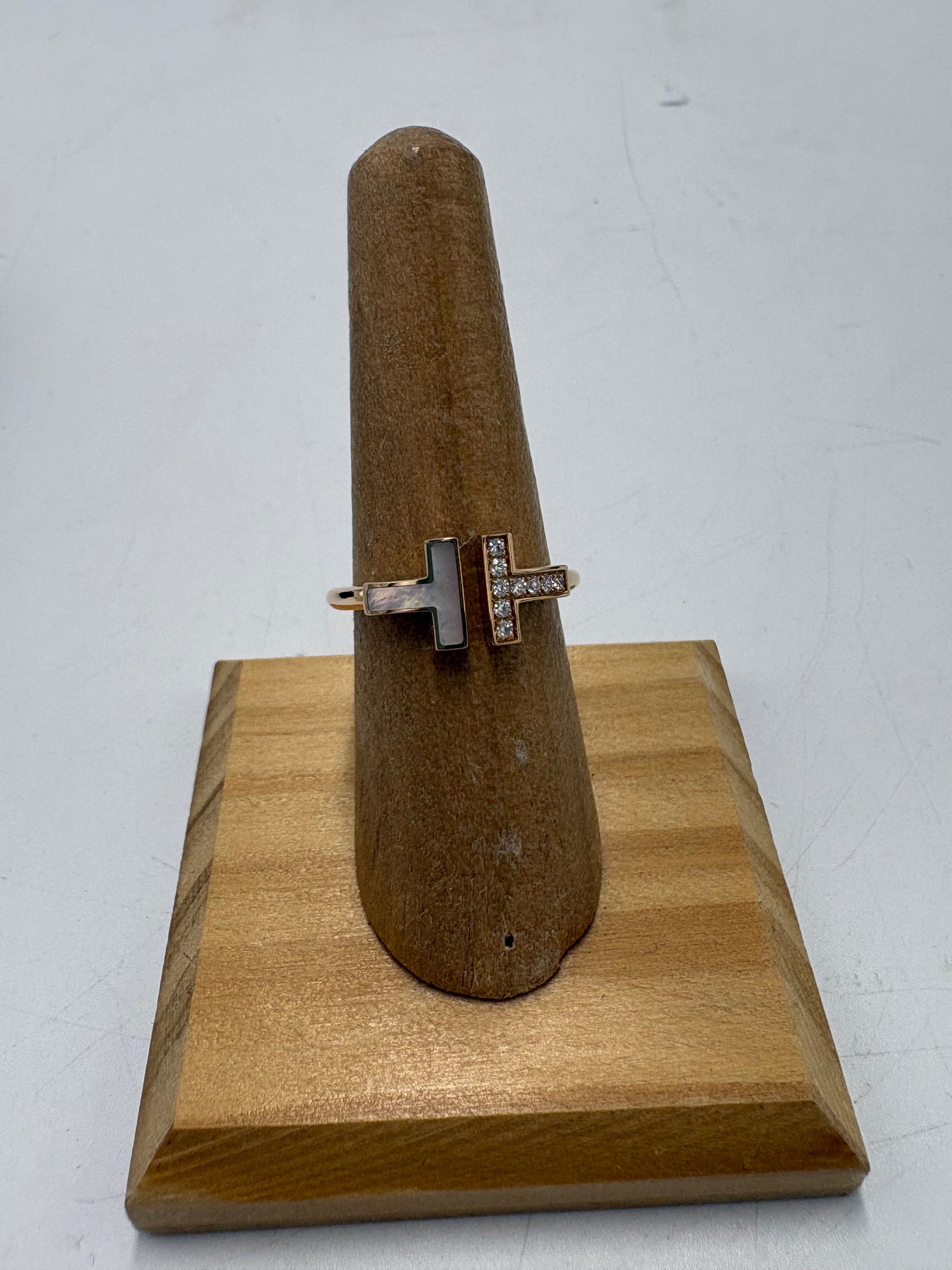 Other Info: T-WIRE RING W/ DIAMONDS AND MOTHER OF PEARL INLAY, APPROX. 0.07 CARAT WEIGHT.