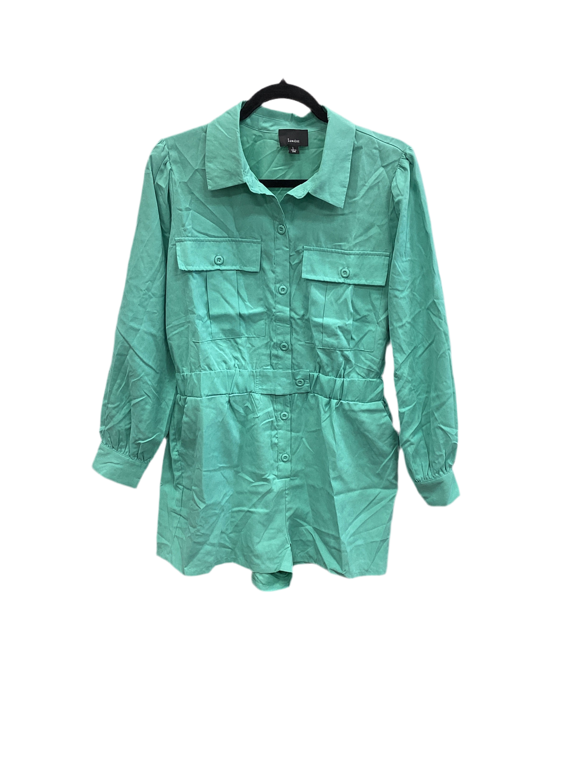 Lumiere teal romper, size L: Effortless chic with vibrant color and comfortable fit.