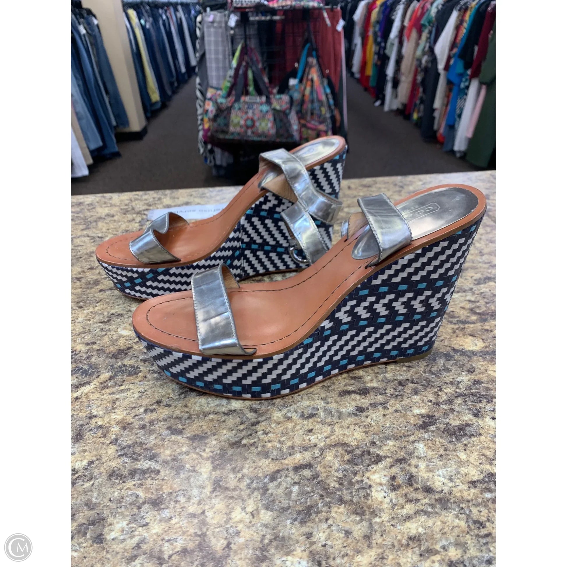 Sandals Designer By Coach In Blue & Silver, Size: 10