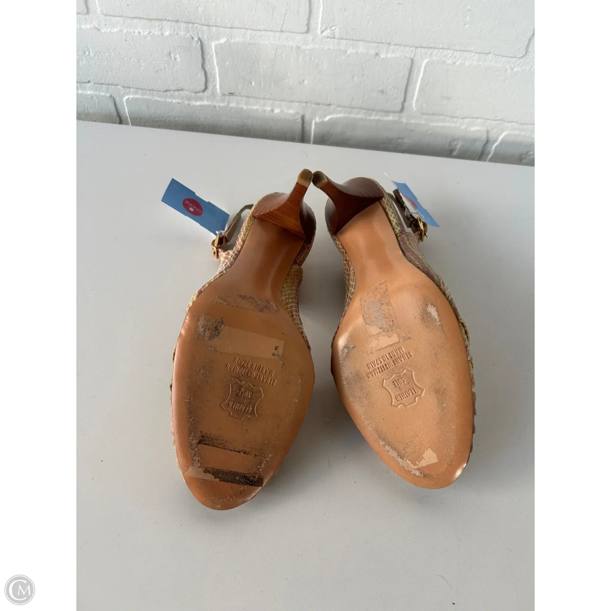 Sandals Designer By Stuart Weitzman In Red & Yellow, Size: 9