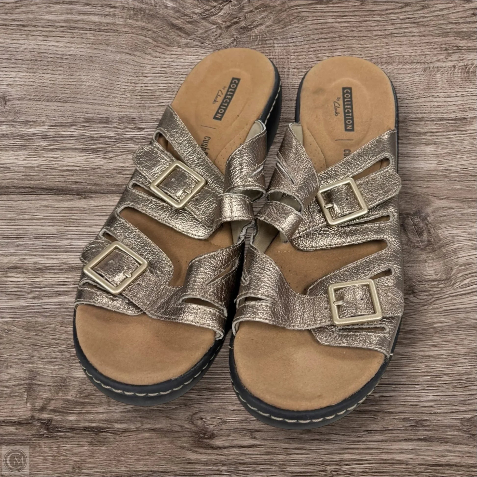 Sandals Flats By Clarks In Gold, Size: 9