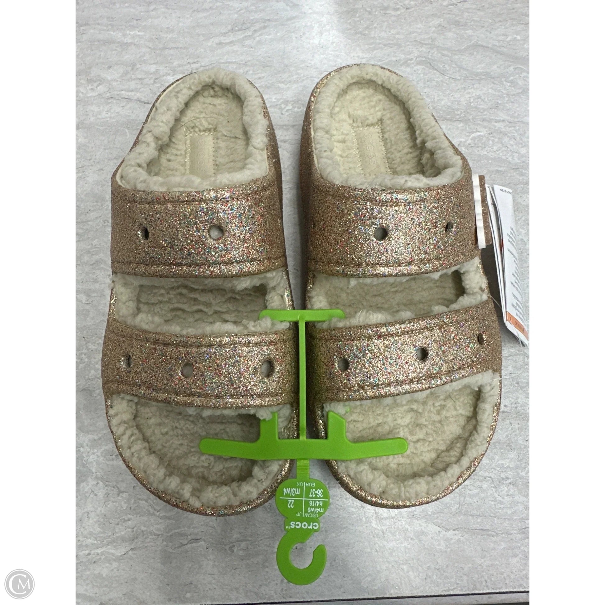 Sandals Flats By Crocs In Gold, Size: 6