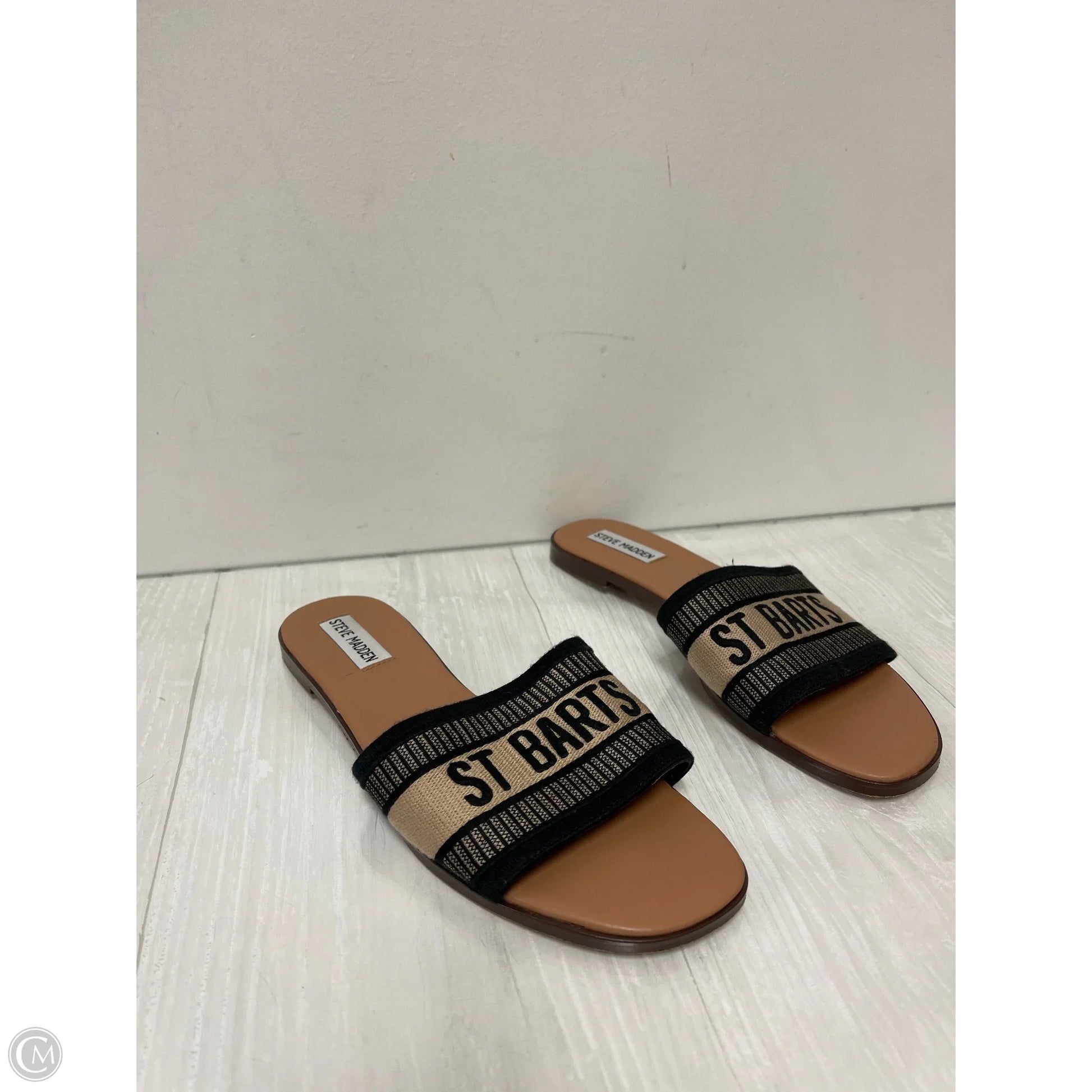 Sandals Flats By Steve Madden In Black & Cream, Size: 8.5