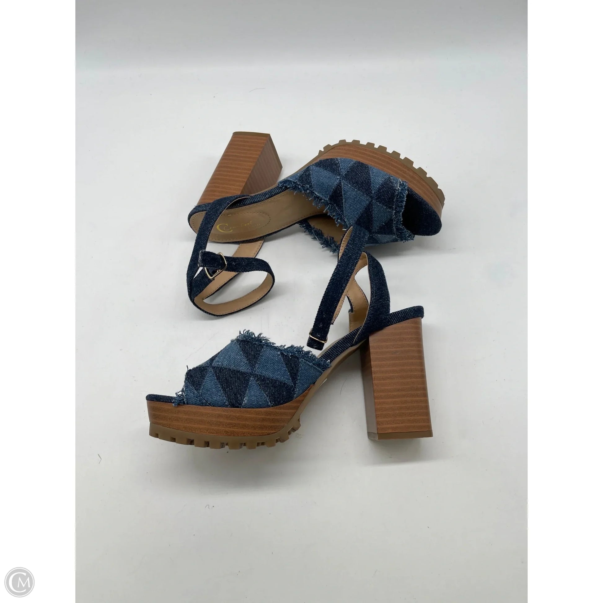 Sandals Heels Block By Cato In Blue Denim, Size: 7