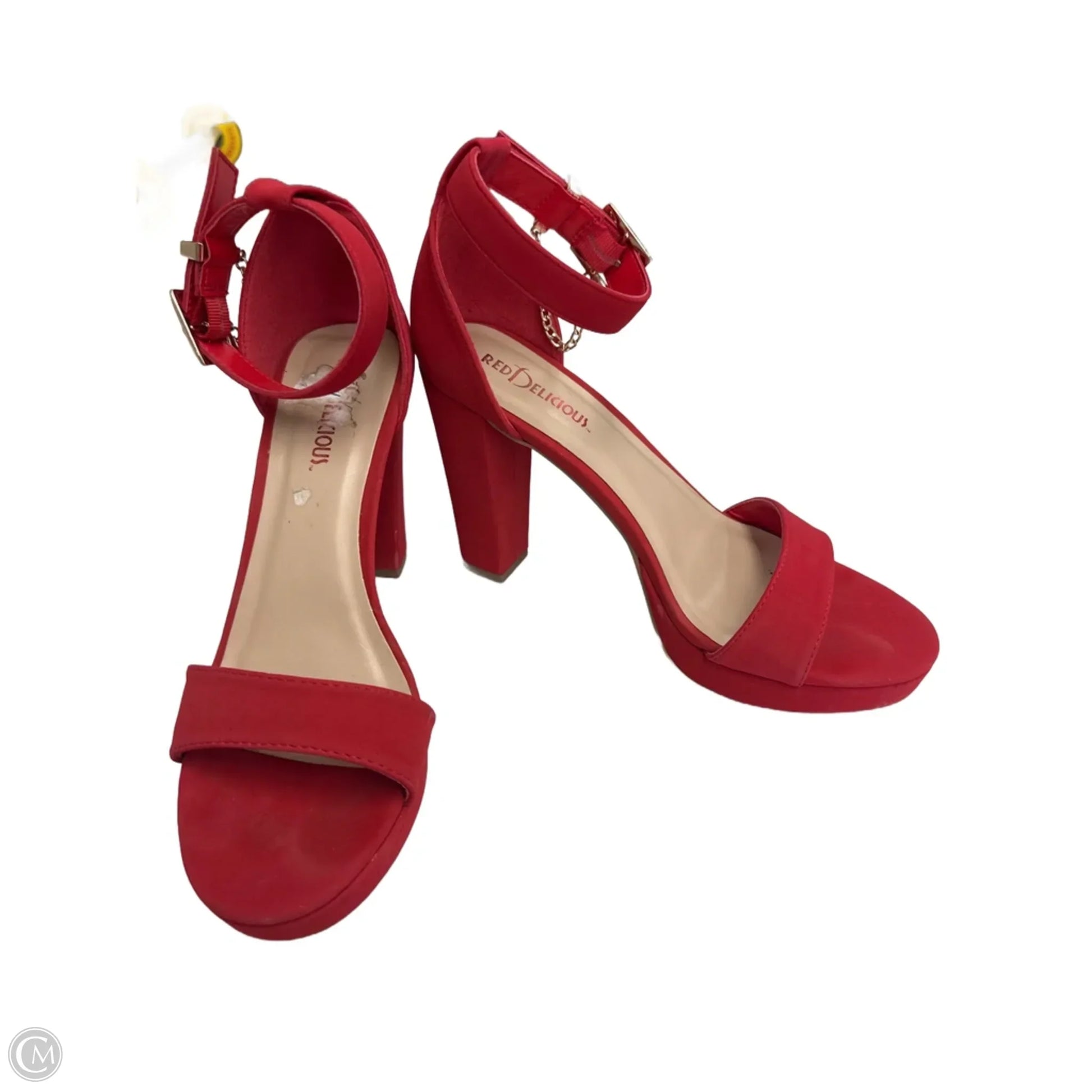 Stride confidently in these fiery red block heel sandals by Clothes Mentor. Size 8, these heels exude power and style without saying a word.