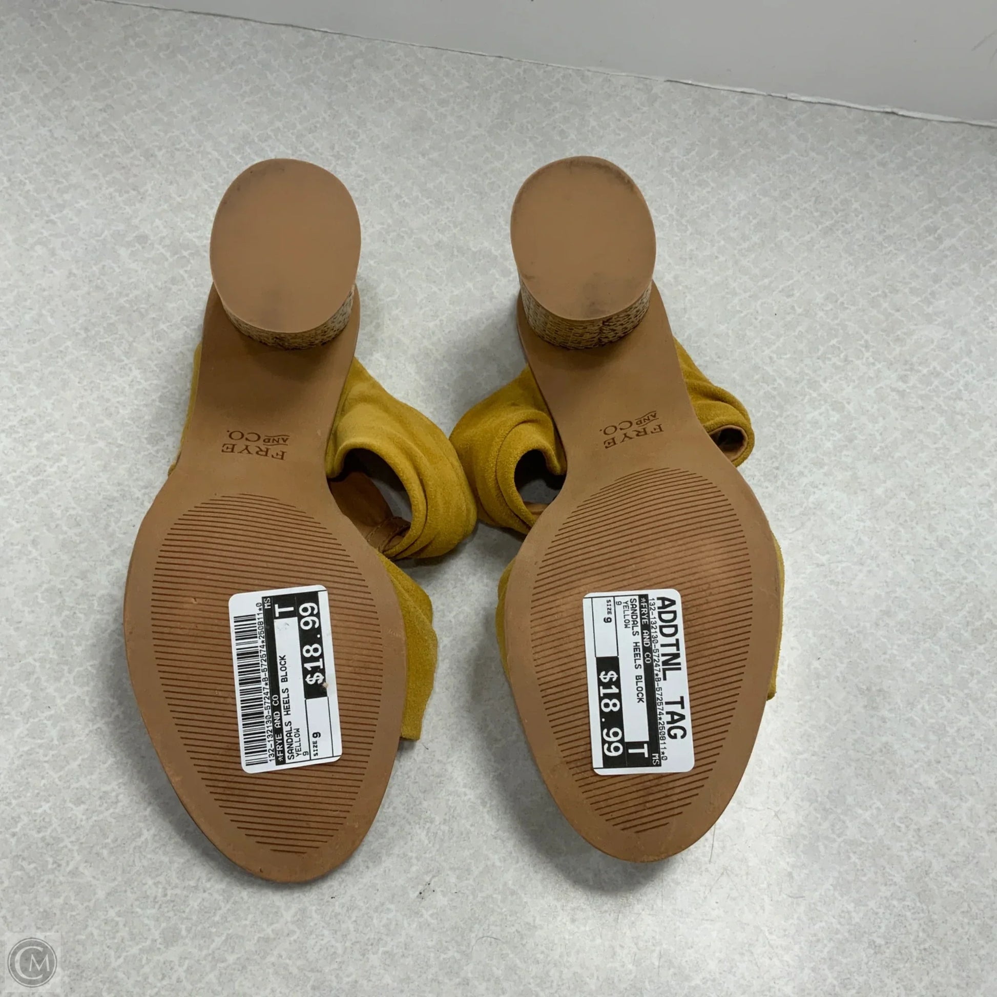 Sandals Heels Block By Frye And Co In Yellow, Size: 9