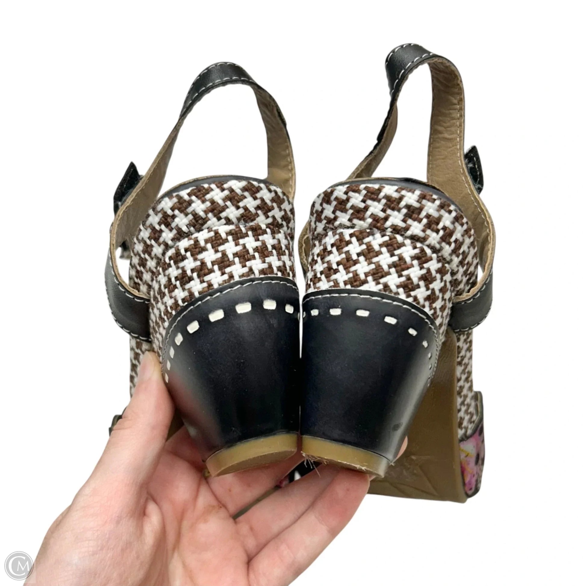 Sandals Heels Block By Spring Step In Black Floral, Size: 6.5