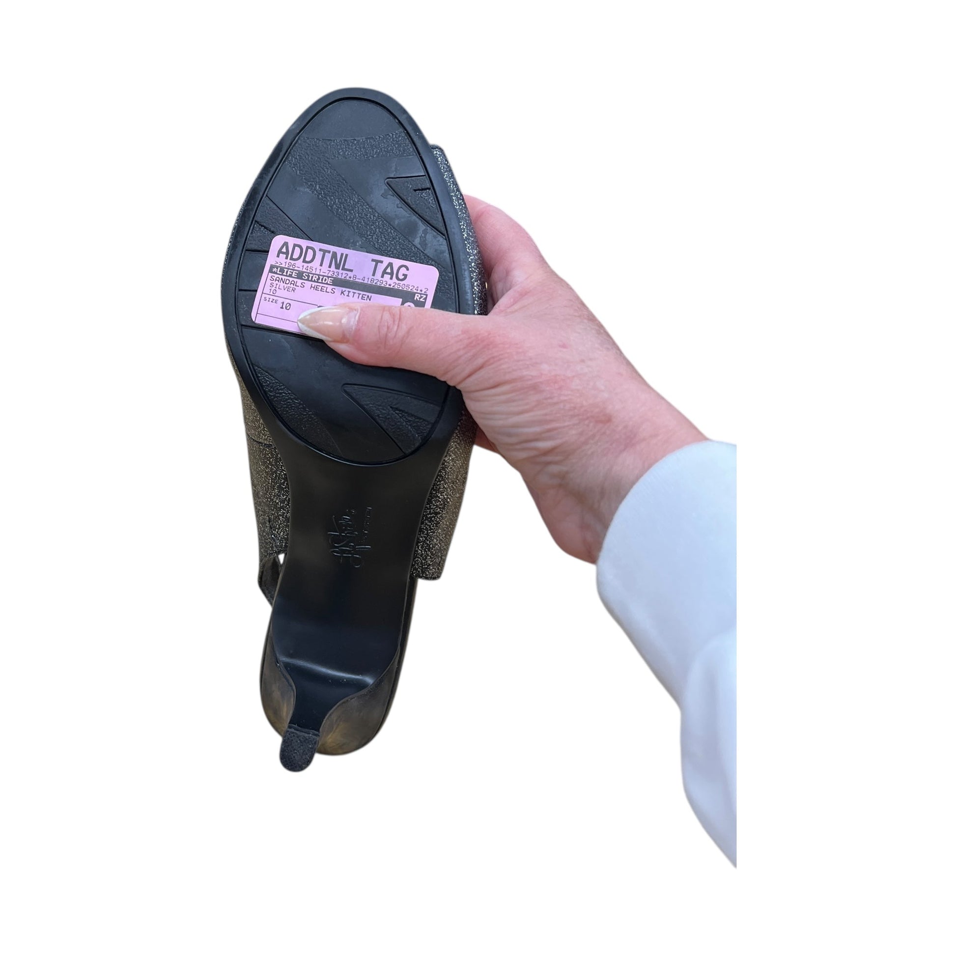 Sandals Heels Kitten By Life Stride In Silver, Size:10