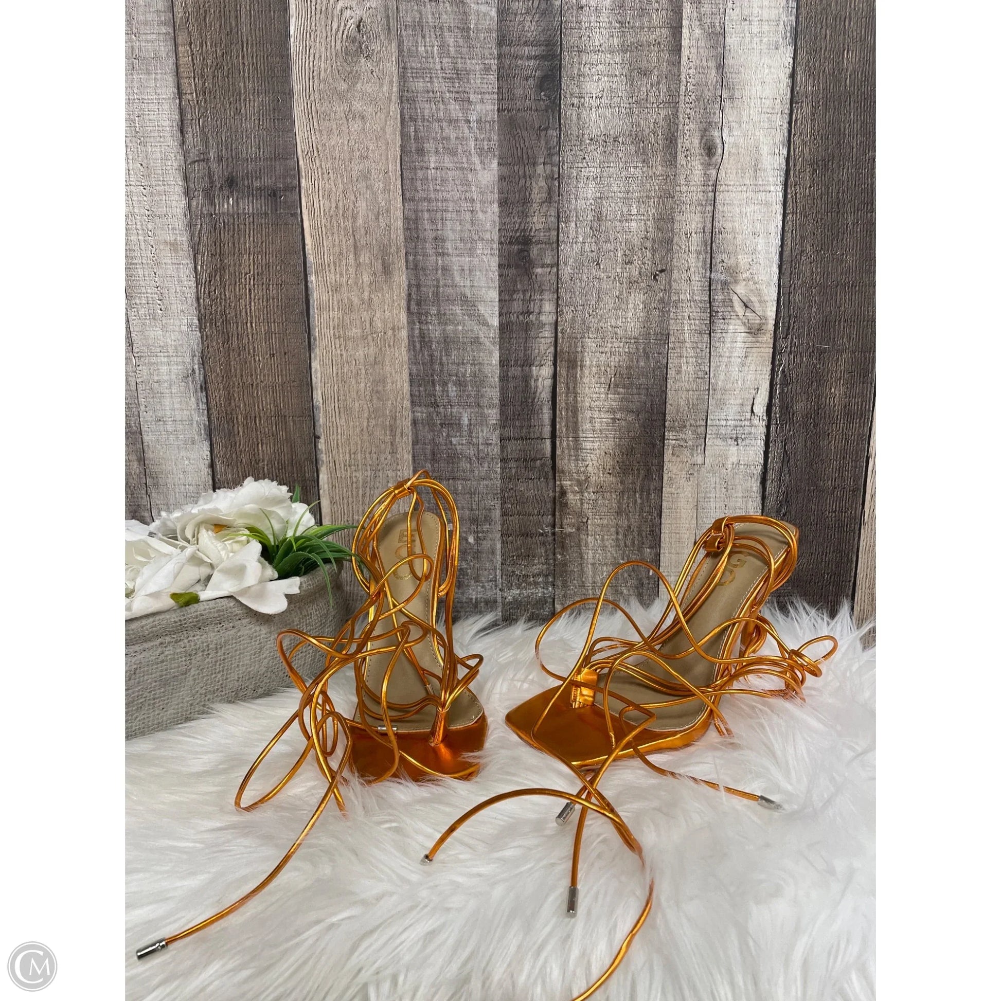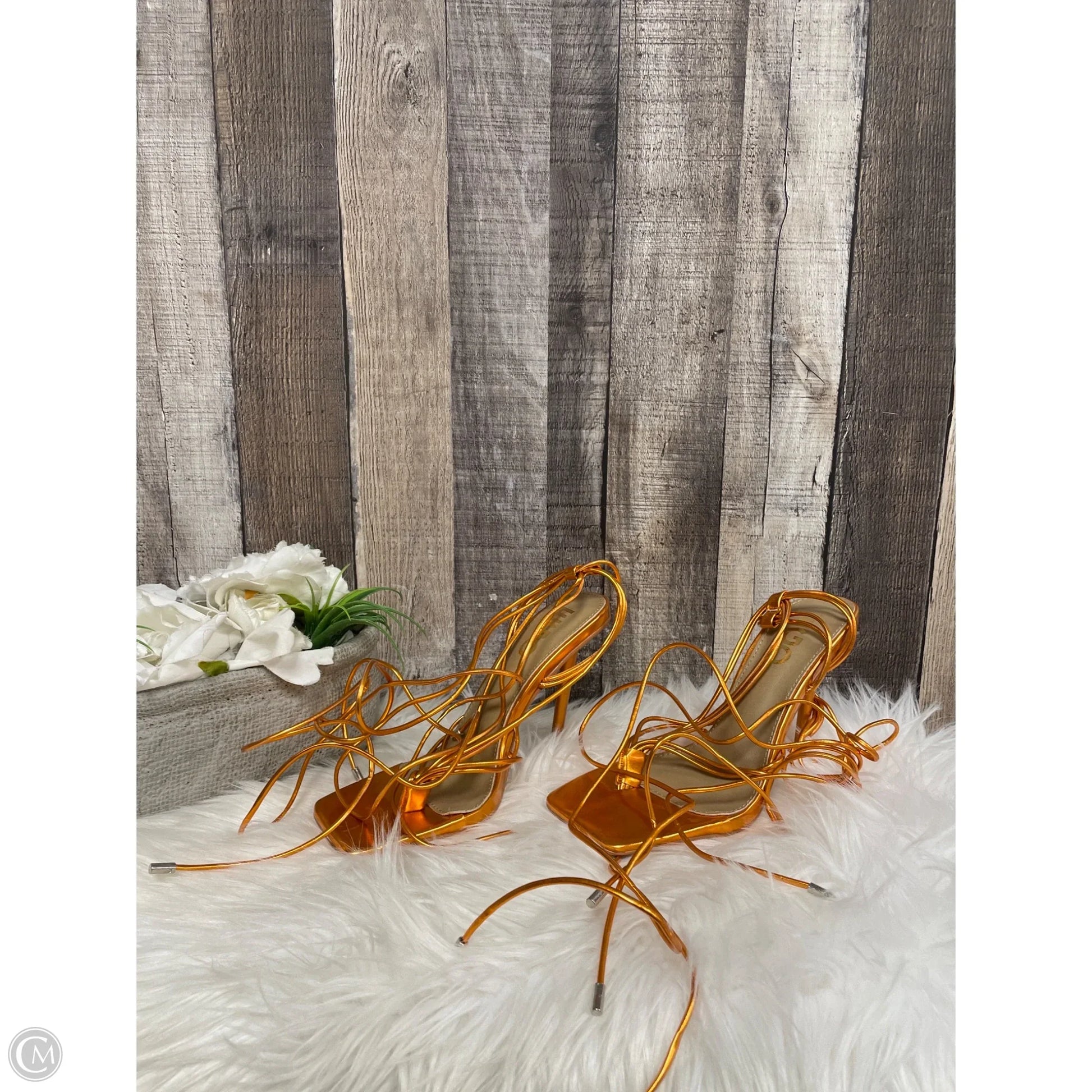 Sandals Heels Stiletto By Cme In Orange, Size: 5
