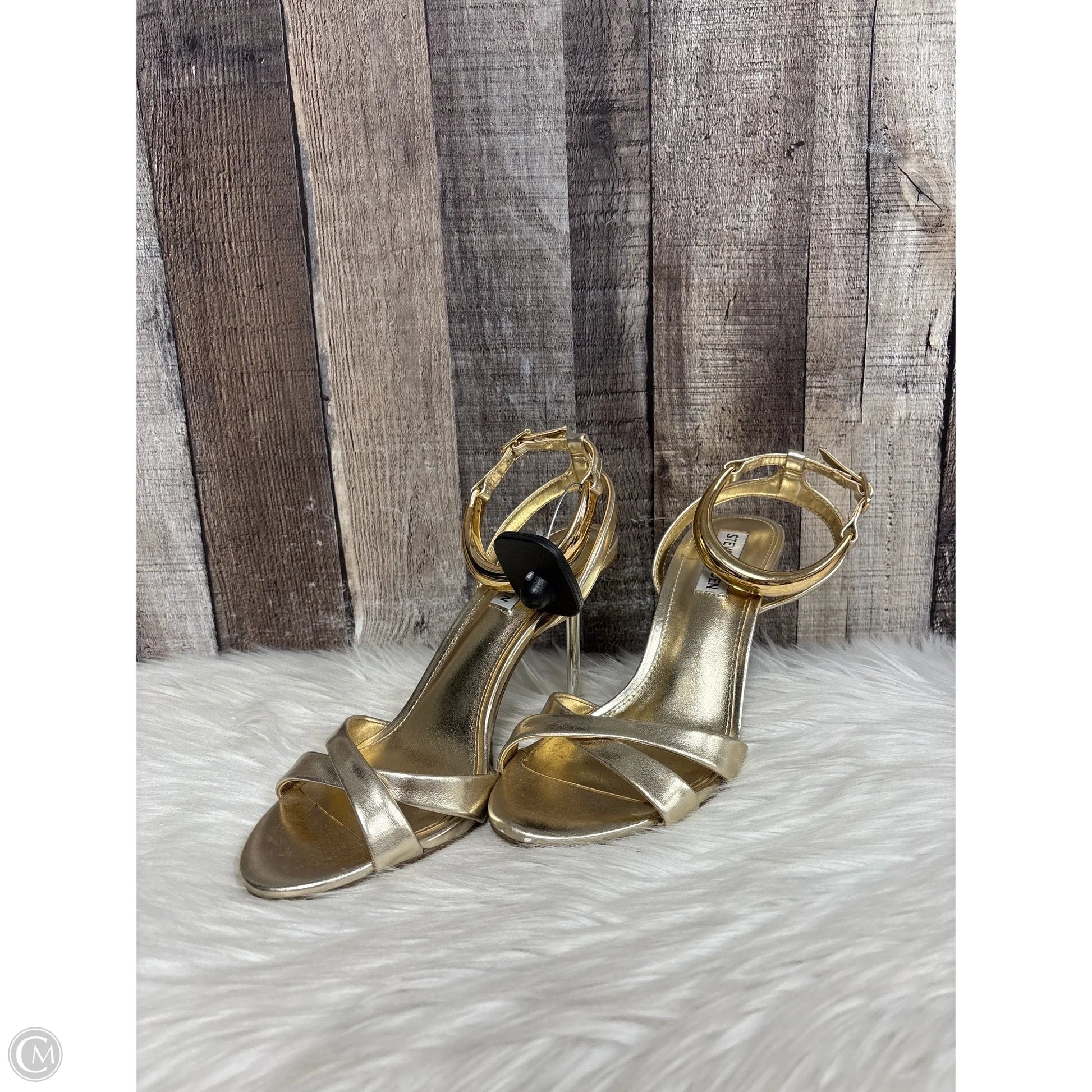 Sandals Heels Stiletto By Steve Madden In Gold, Size: 8
