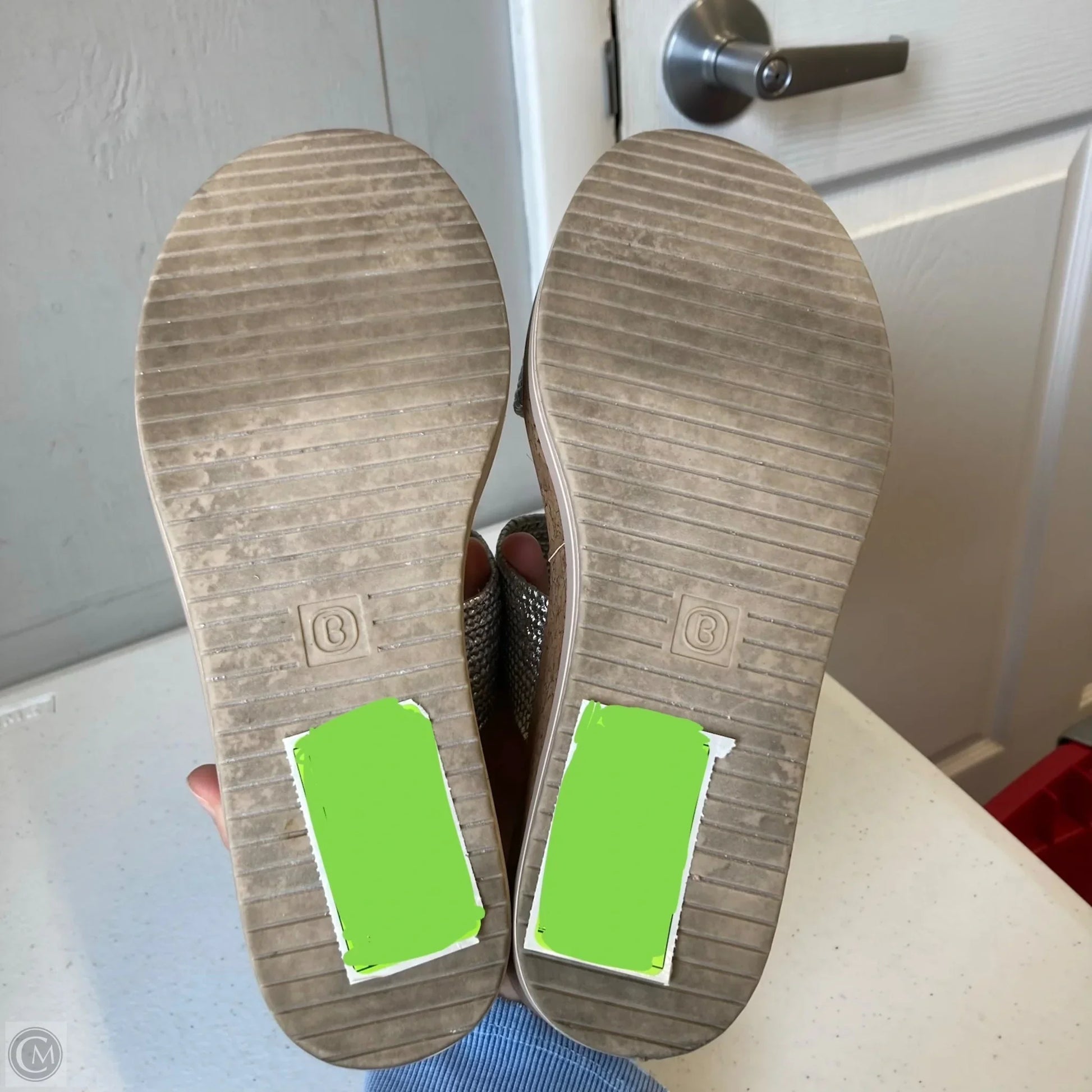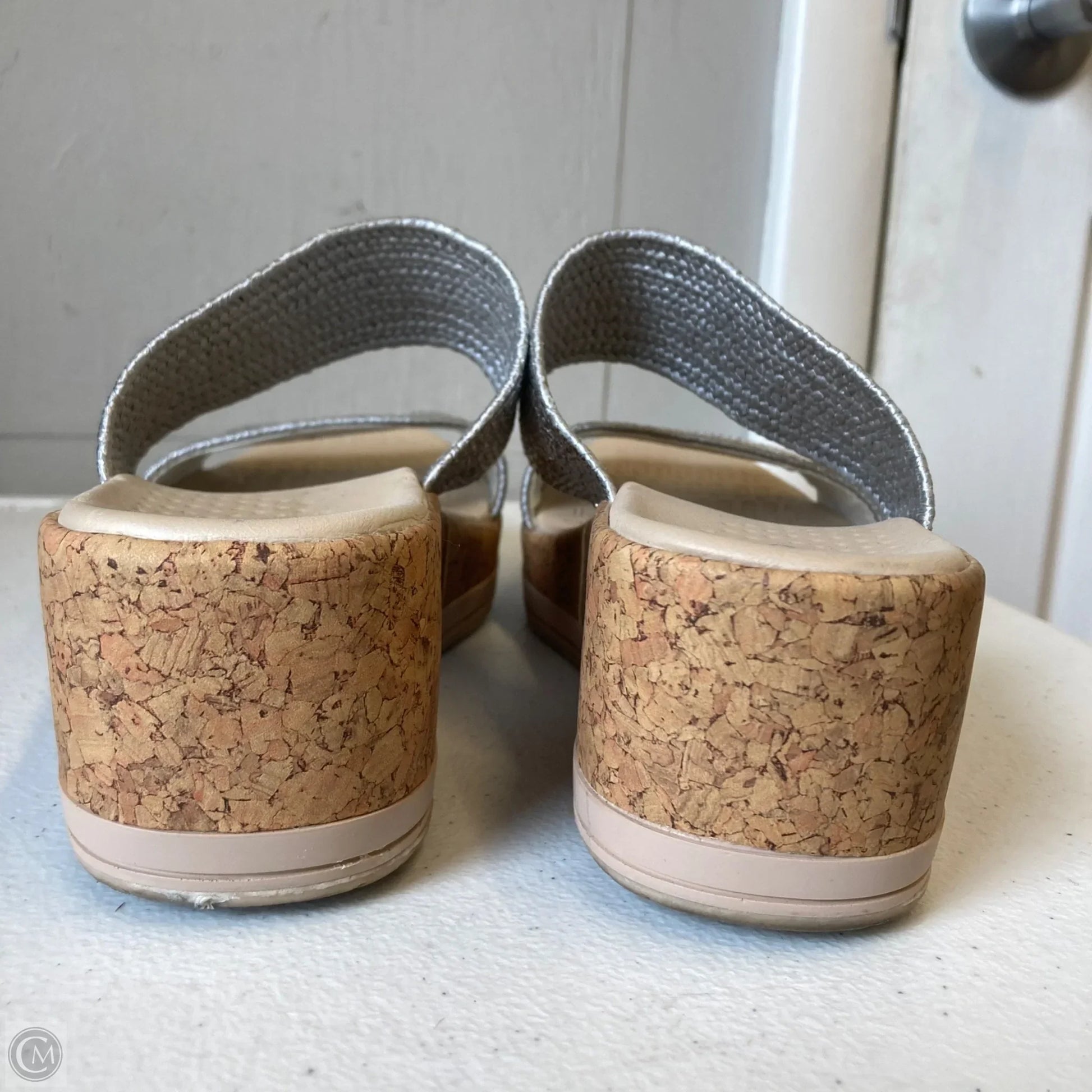 Sandals Heels Wedge By Bzees In Silver, Size: 8.5