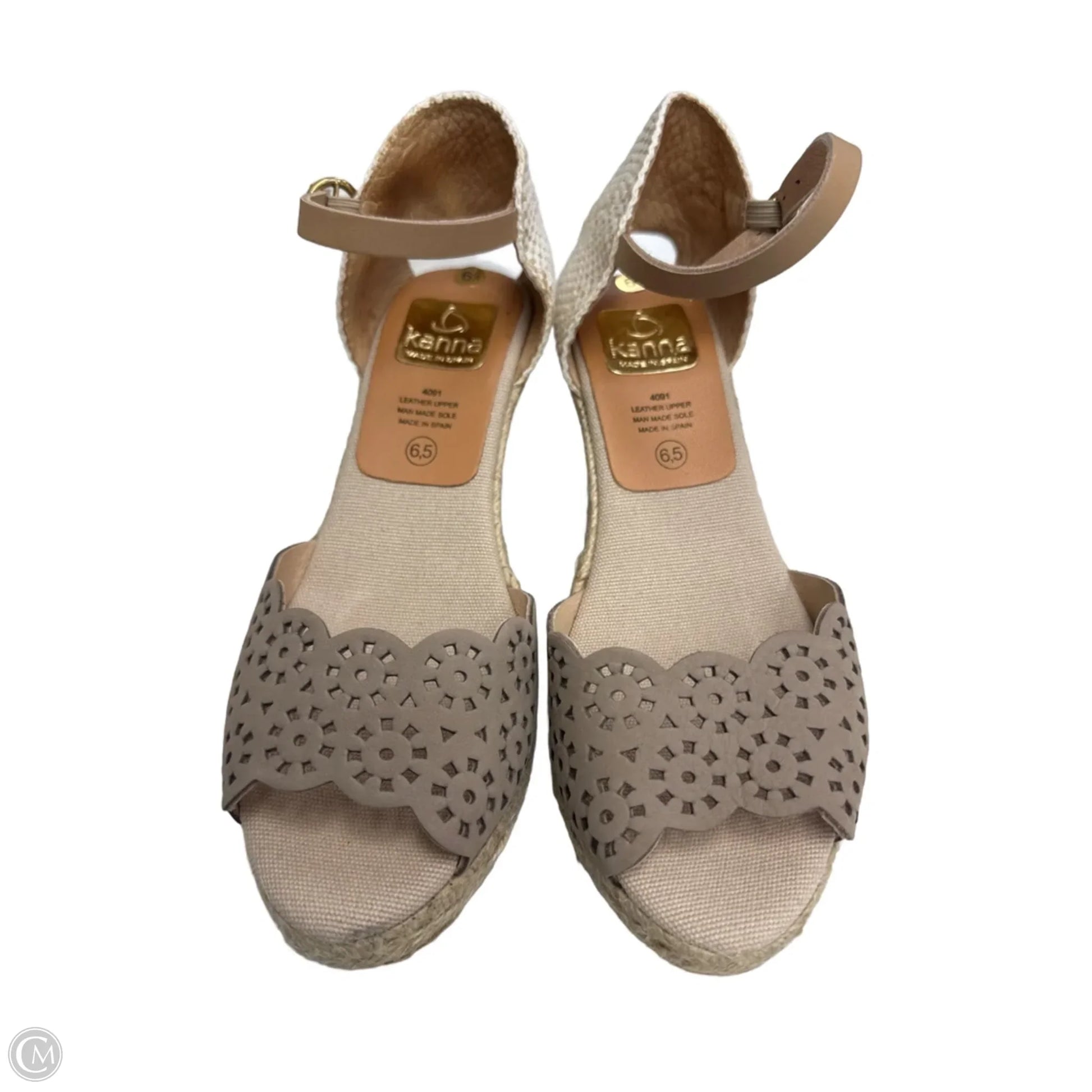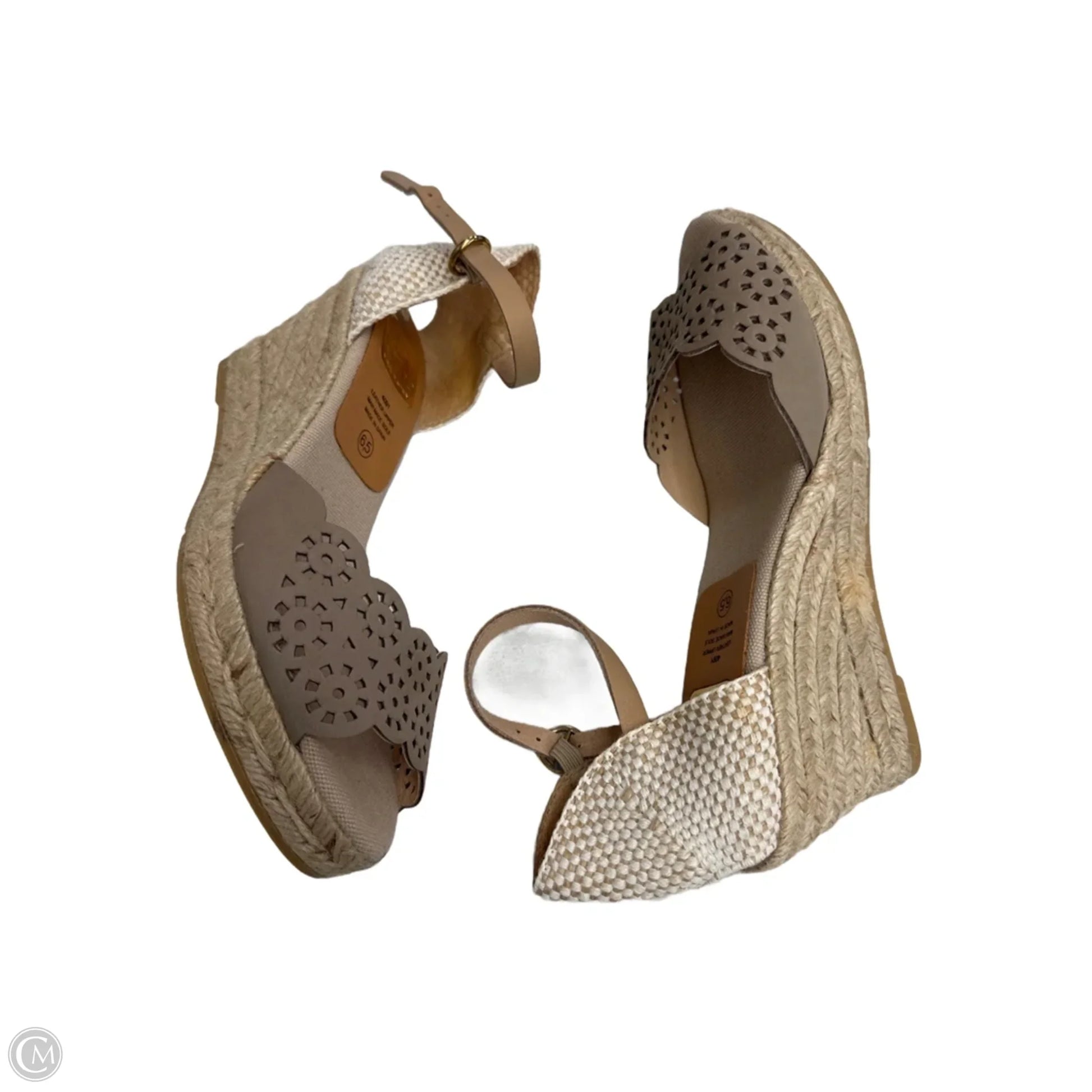 Sandals Heels Wedge By Clothes Mentor In Taupe, Size: 6.5