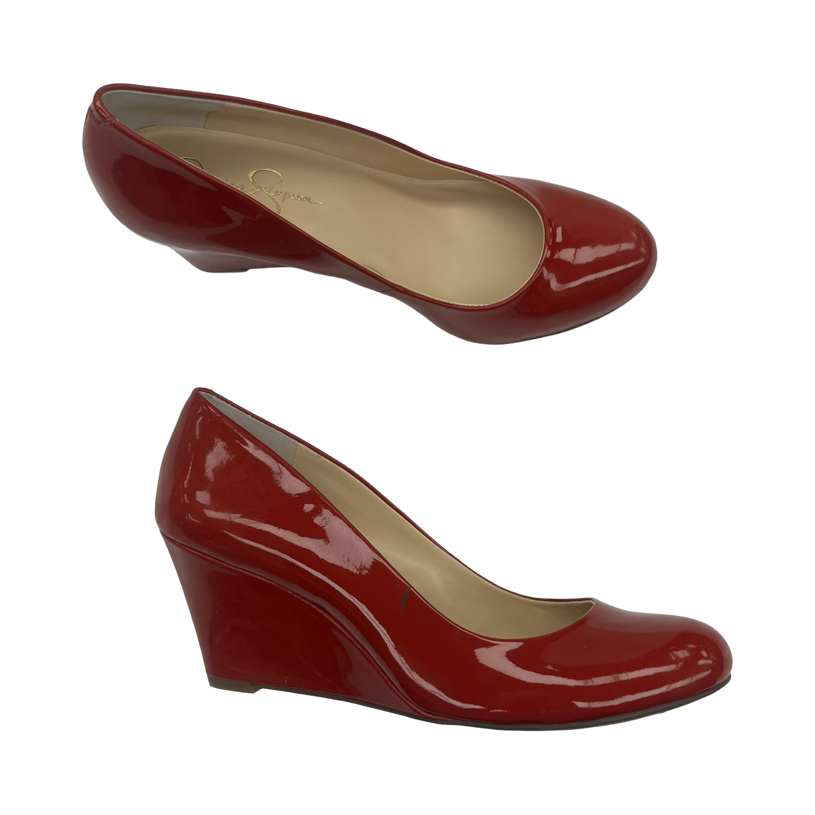 Step into bold confidence with Jessica Simpson's red wedge sandals. Size 9.5. Strut your stuff in comfort and style. Fabulous!