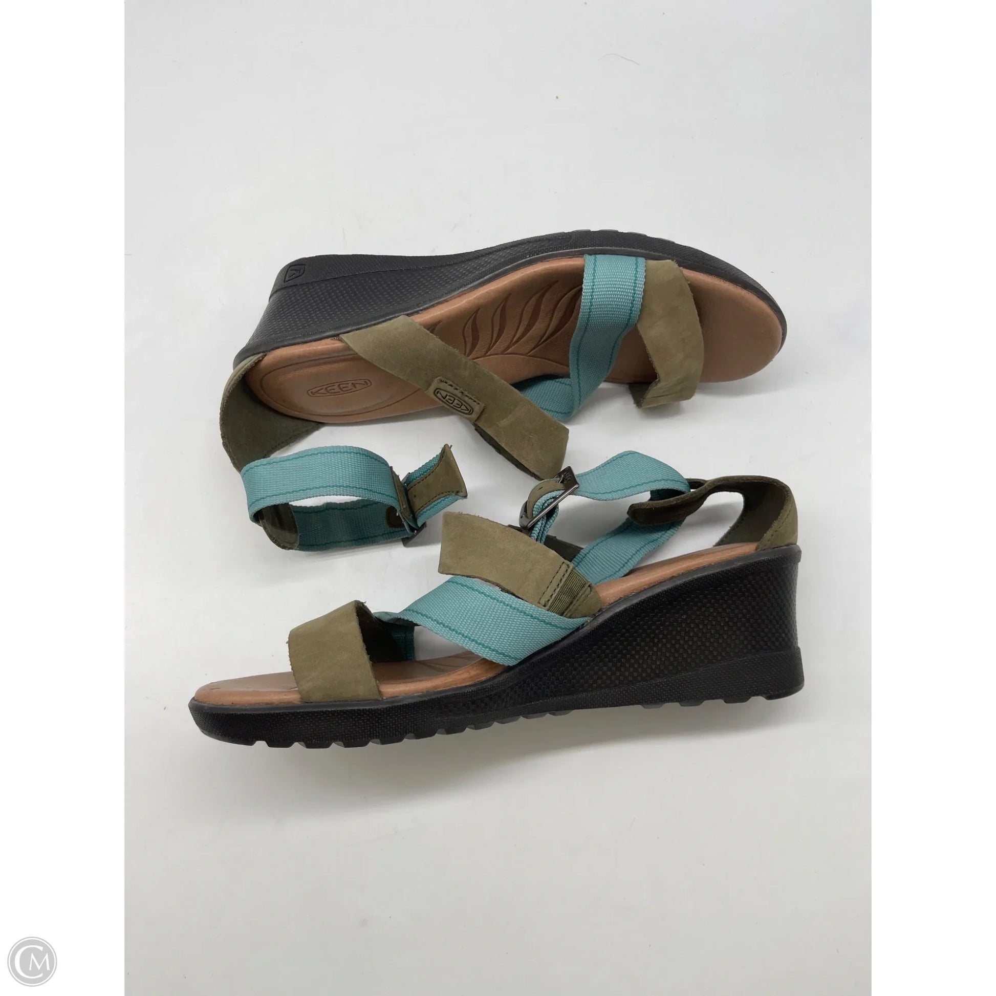 Sandals Heels Wedge By Keen In Green, Size: 8.5