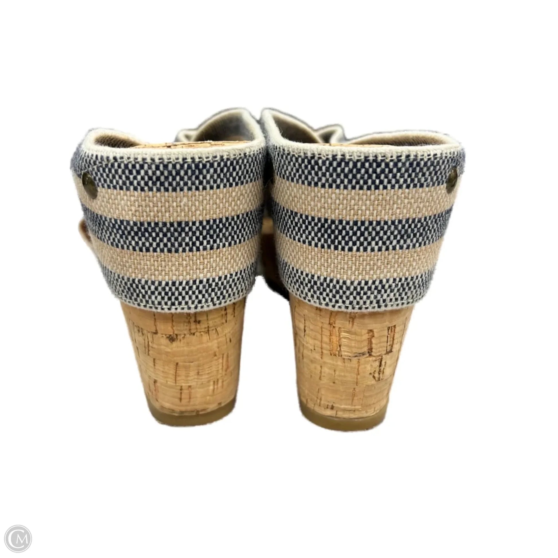 Sandals Heels Wedge By Lucky Brand In Blue & Cream, Size: 8.5