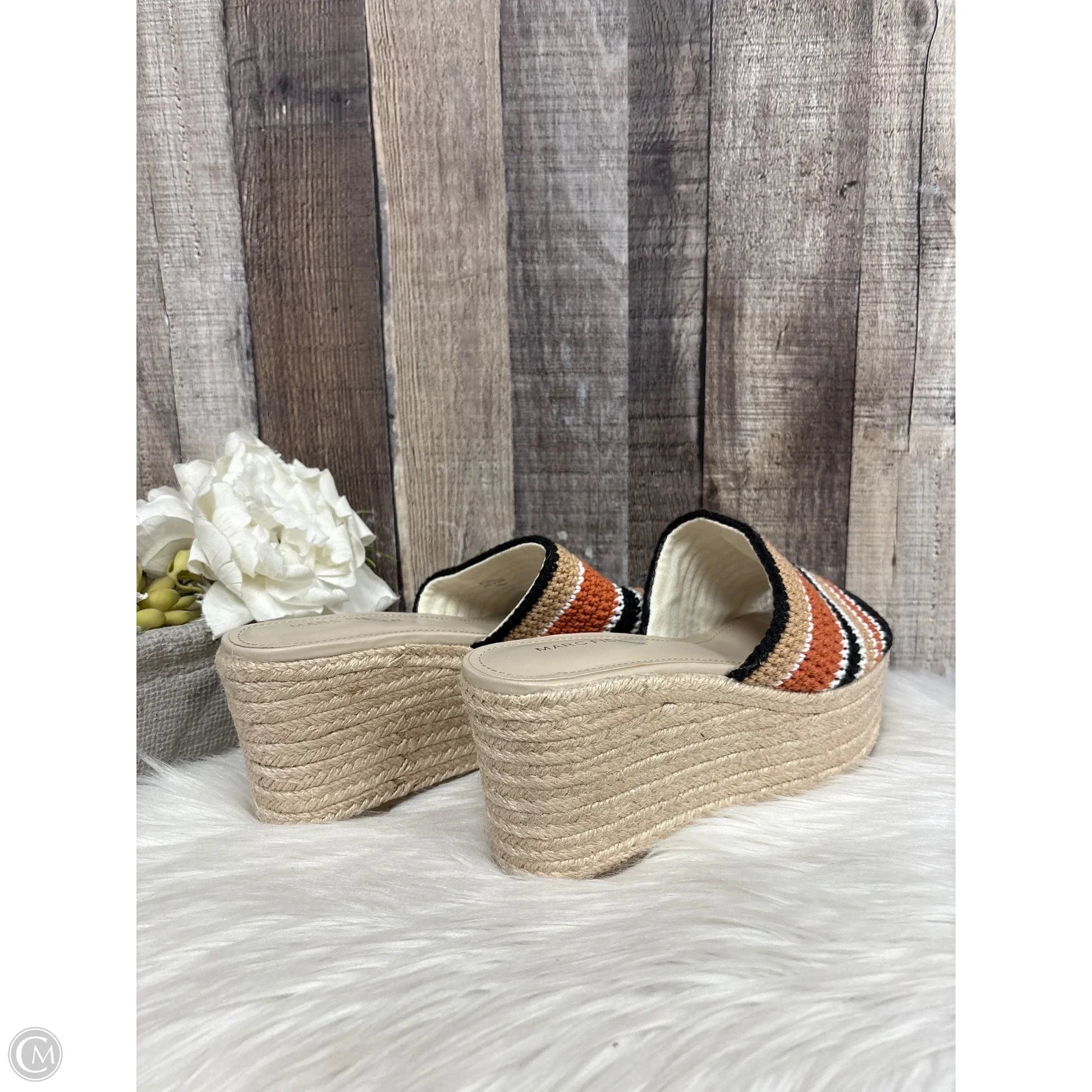 Sandals Heels Wedge By Marc Fisher In Brown & Cream, Size: 8