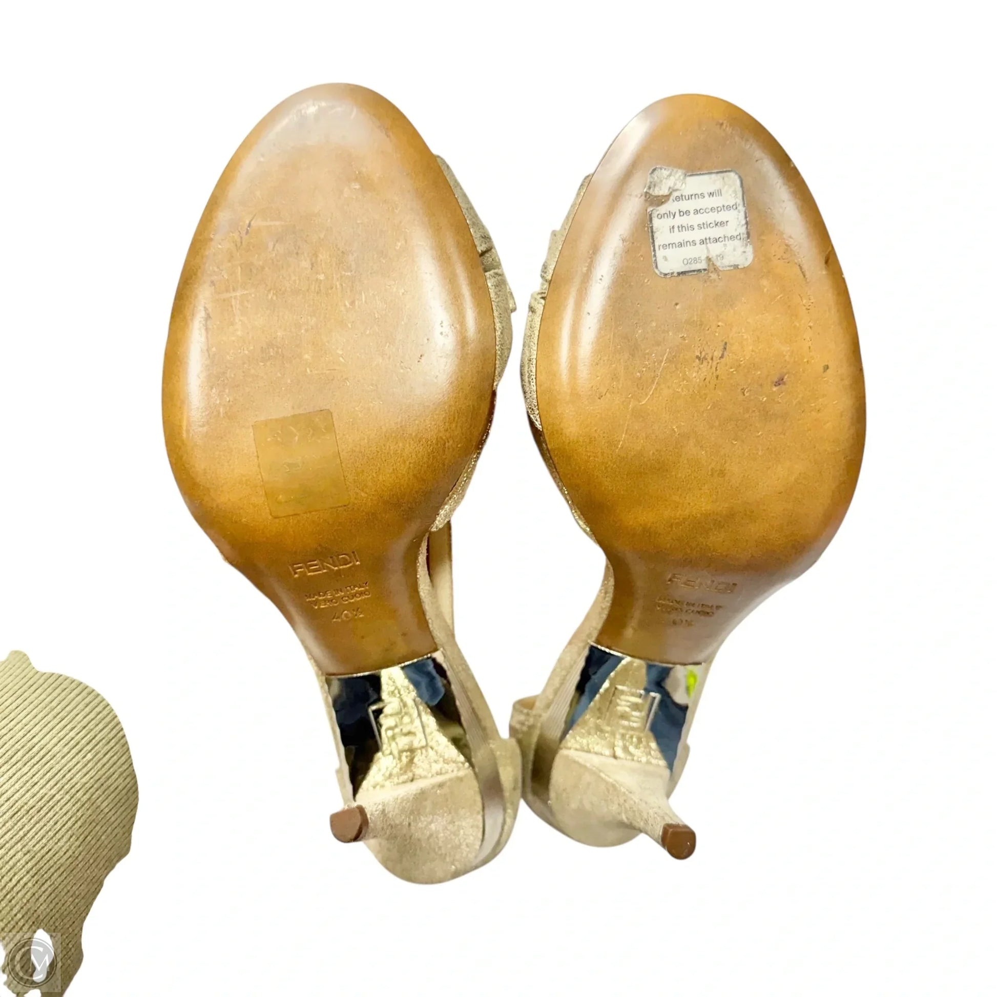 Sandals Luxury Designer By Fendi In Gold, Size: 10