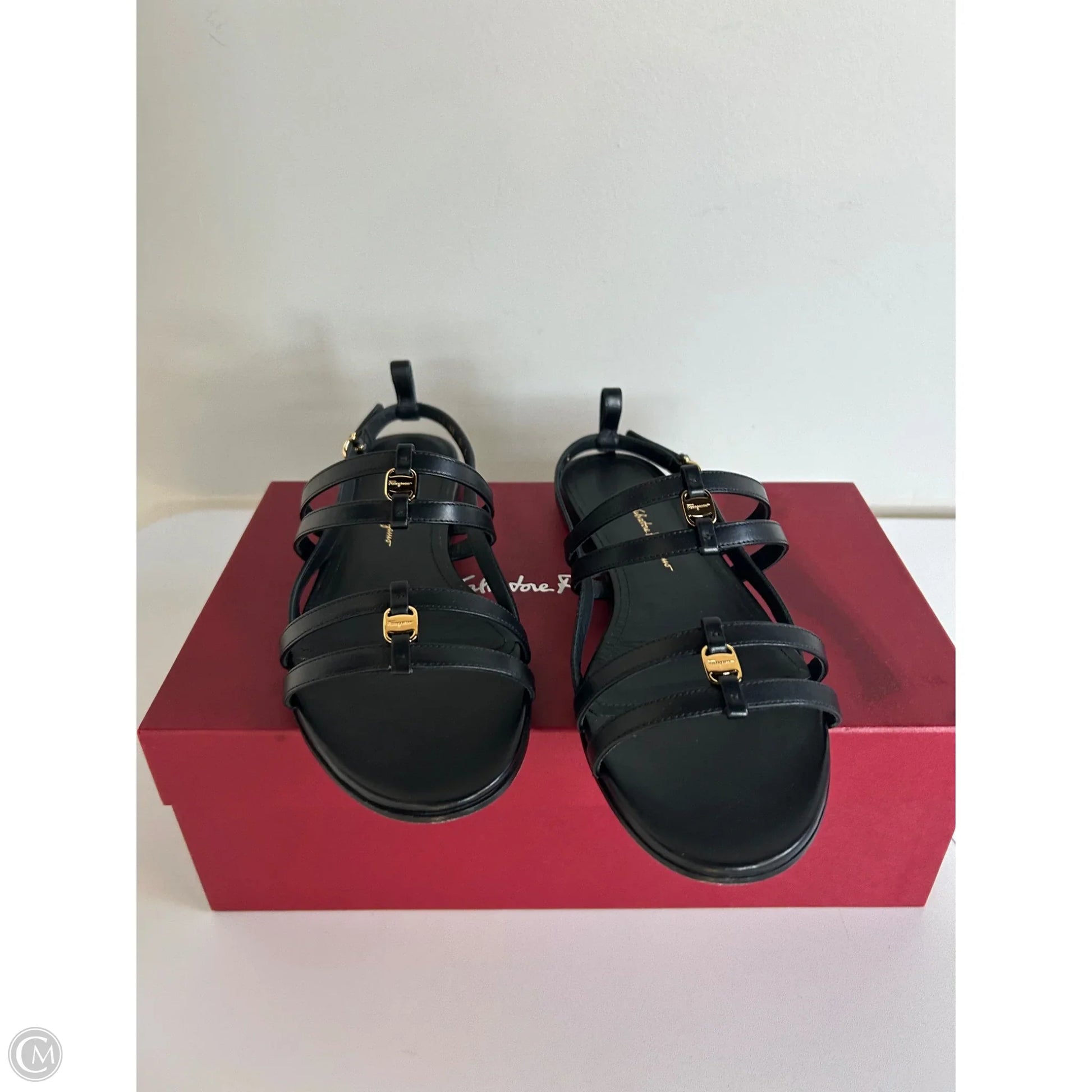 Sandals Luxury Designer By Ferragamo In Black, Size: 8.5