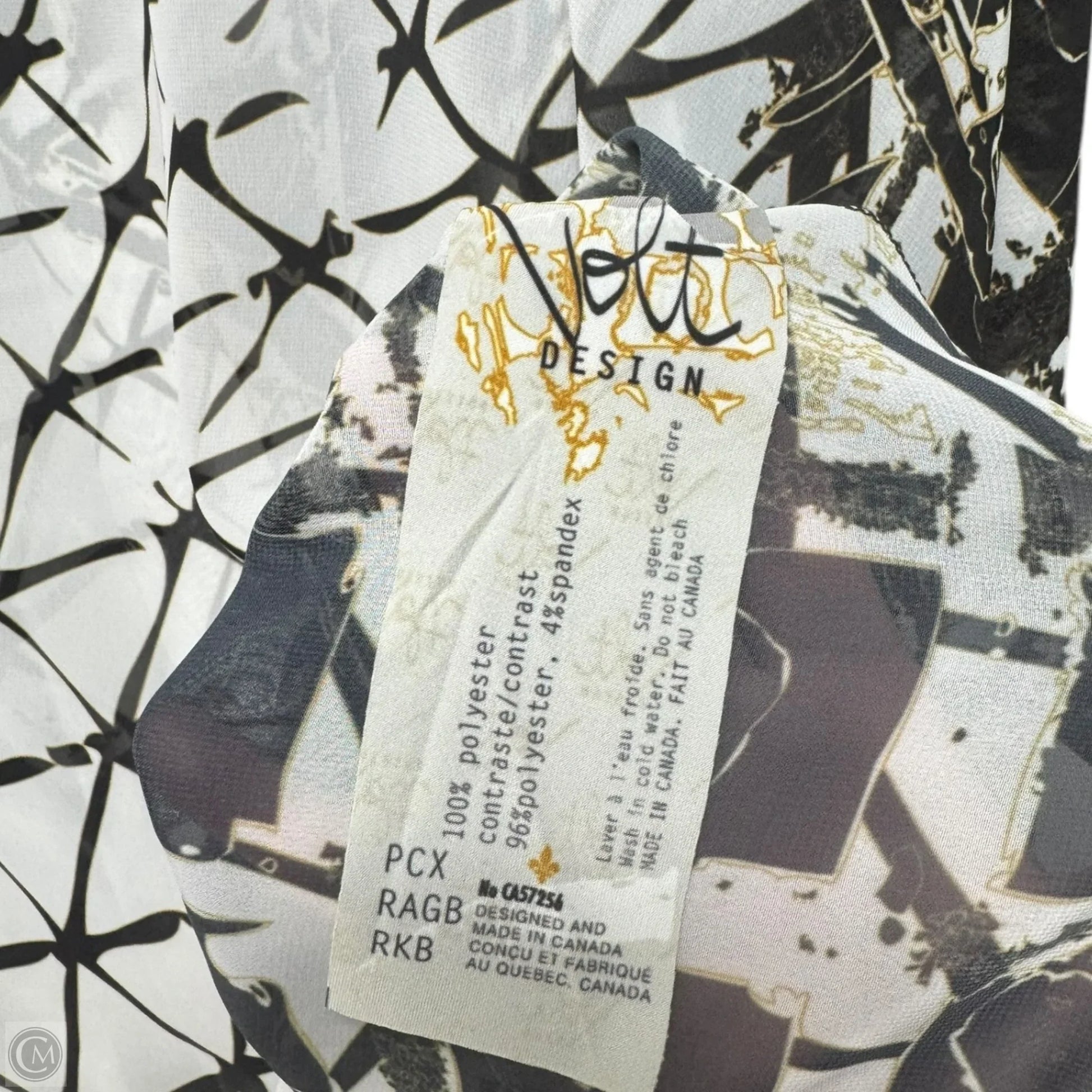 Sheer Patterned Blouse Long Sleeve By Volti In Black & White, Size: M