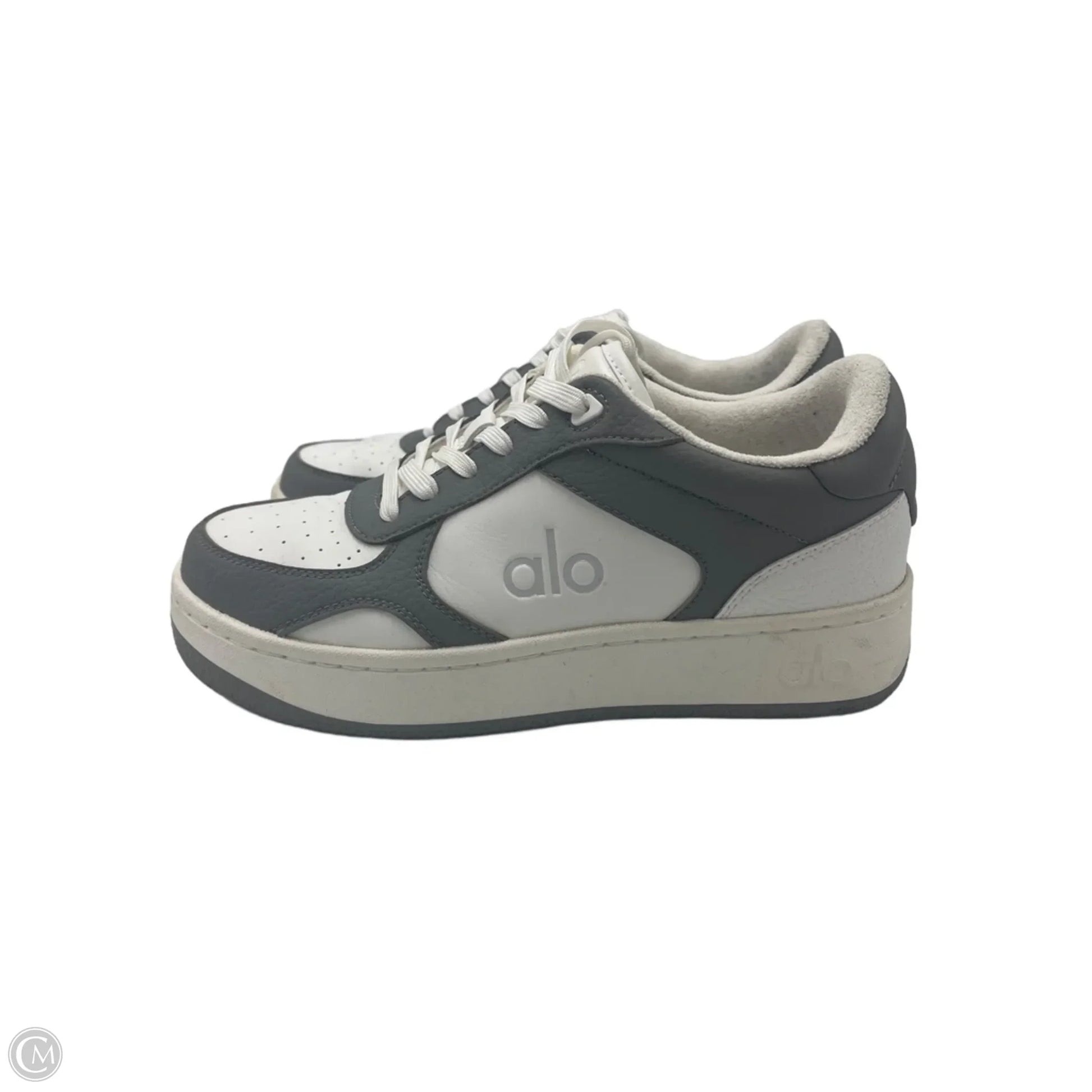 Step up your game with Alo's Grey & White Athletic Shoes in Size 7.5 for superior performance and style.