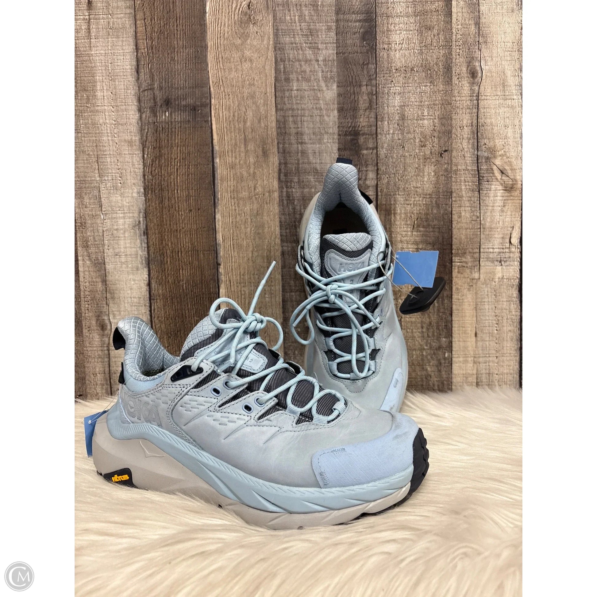 Blue Hoka athletic shoes in size 7 for active comfort.