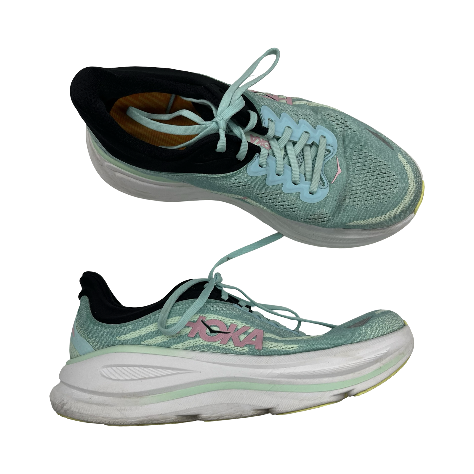 Stride with grace in these Hoka Athletic Shoes in vibrant green, size 9.5. Embrace luxury with cushioned comfort, unmatched support, and elevated performance.