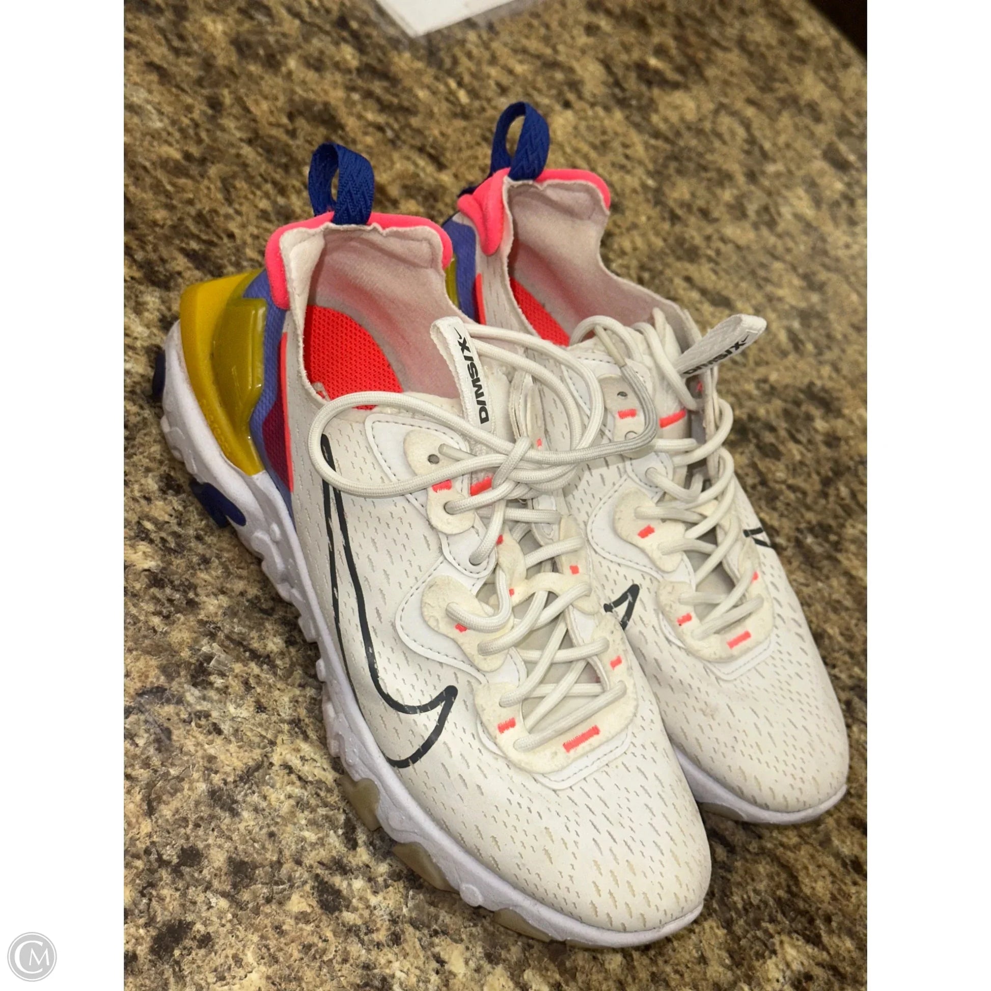 Channel your inner athlete in these Nike white & yellow shoes; size 8 for ultimate performance.