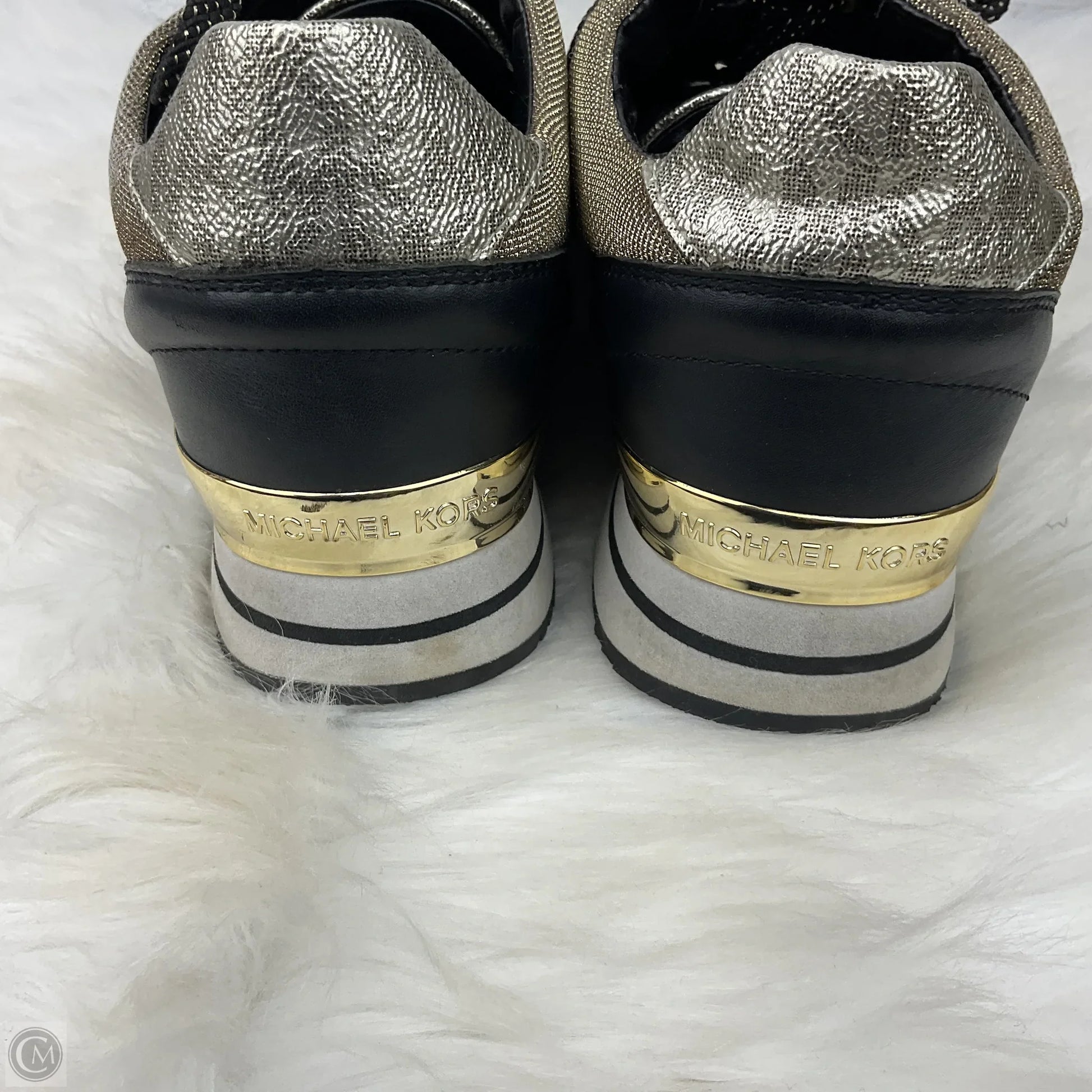 Shoes Designer By Michael Kors In Black & Gold, Size: 7.5