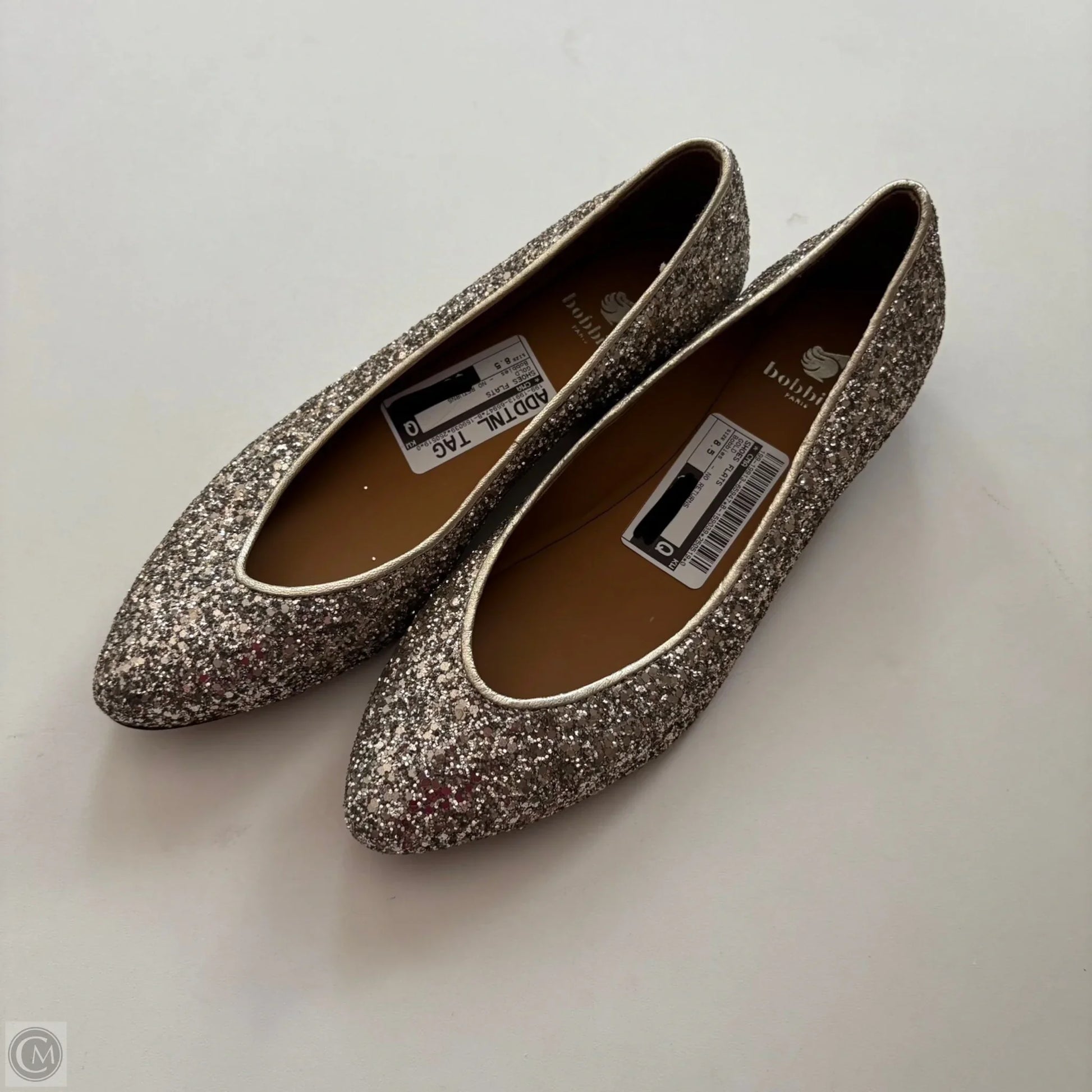 Step into the spotlight with Bobbies Gold Flats in size 8.5 - a glamorous touch to any outfit.