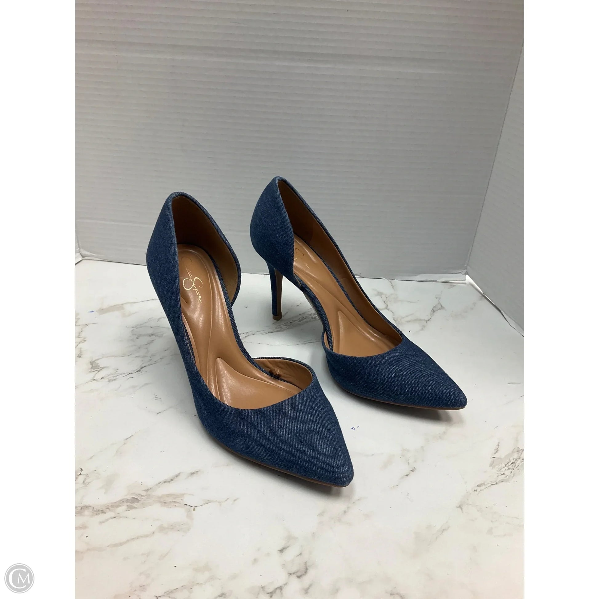 Shoes Heels Stiletto By Jessica Simpson In Blue Denim, Size: 9