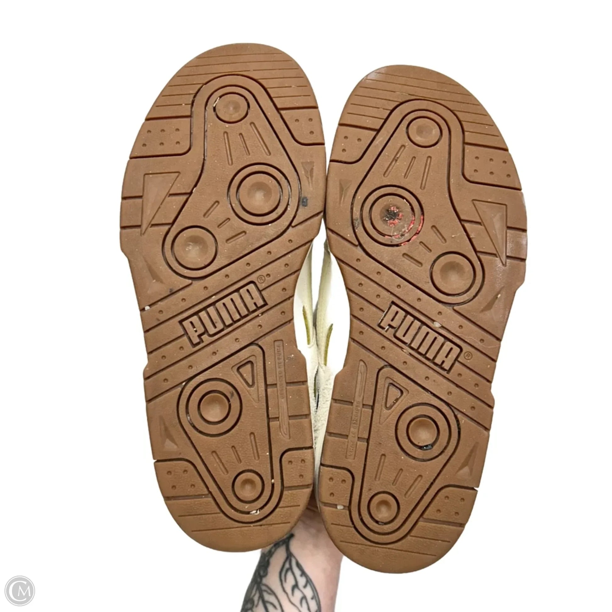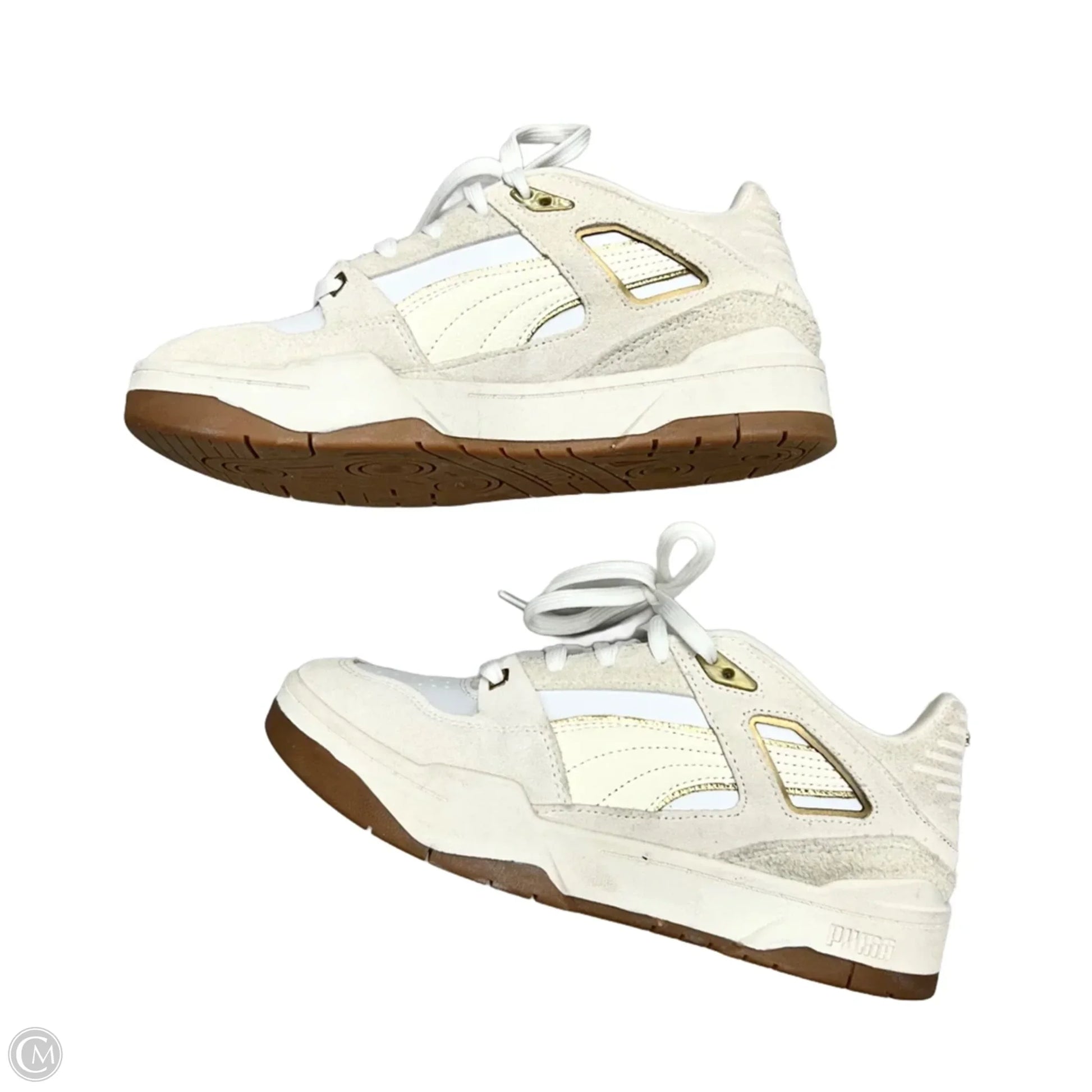 Shoes Sneakers By Puma In Gold & White, Size: 8
