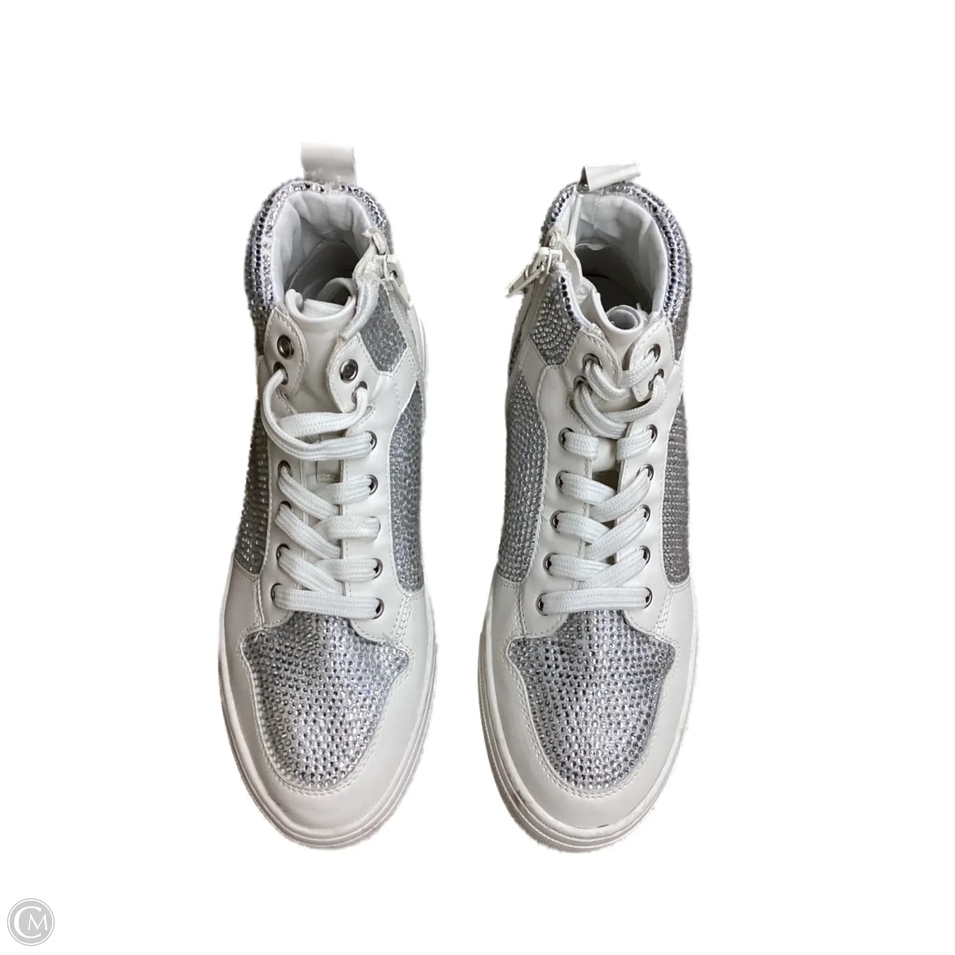 Shoes Sneakers By Steve Madden In Silver & White, Size: 7.5